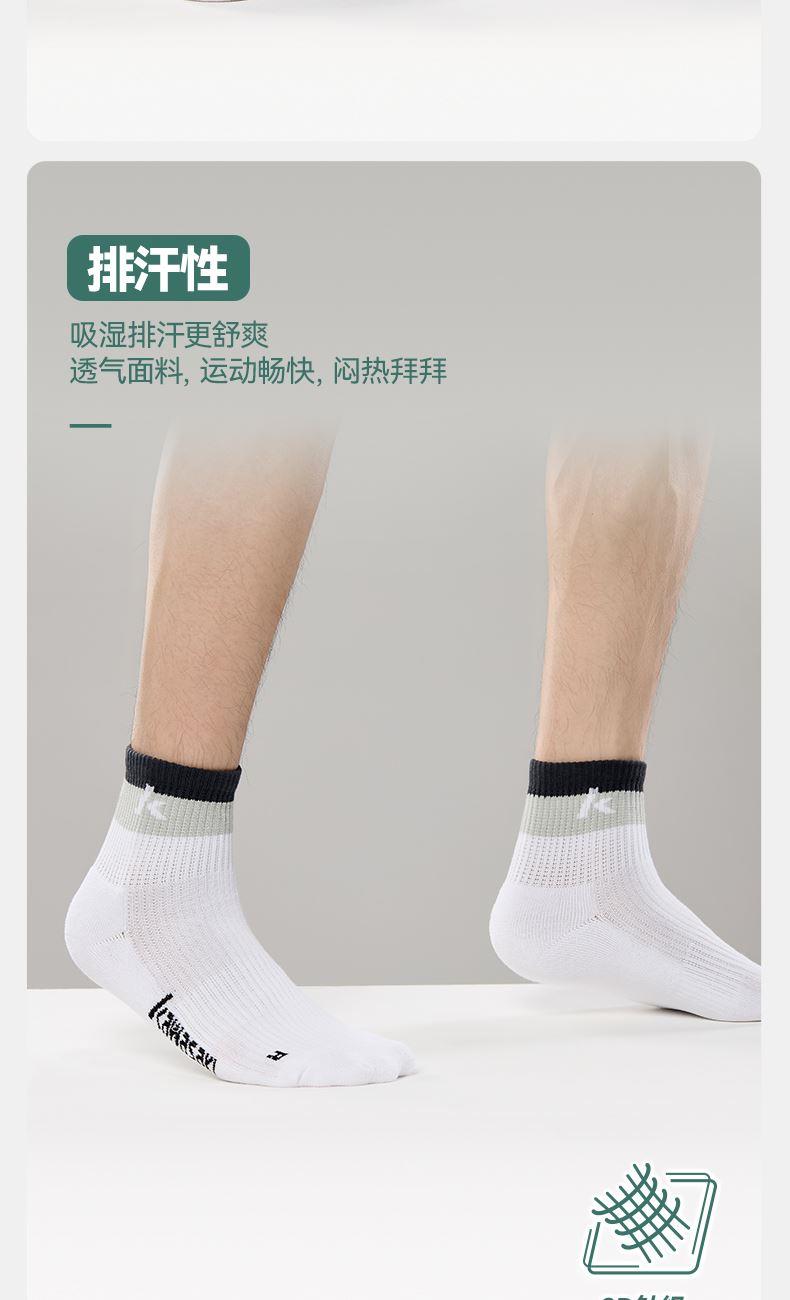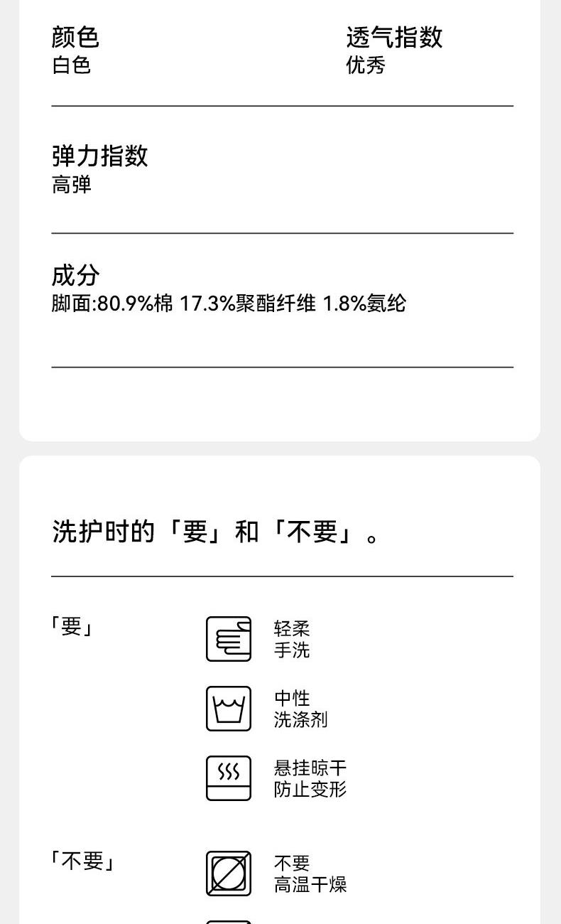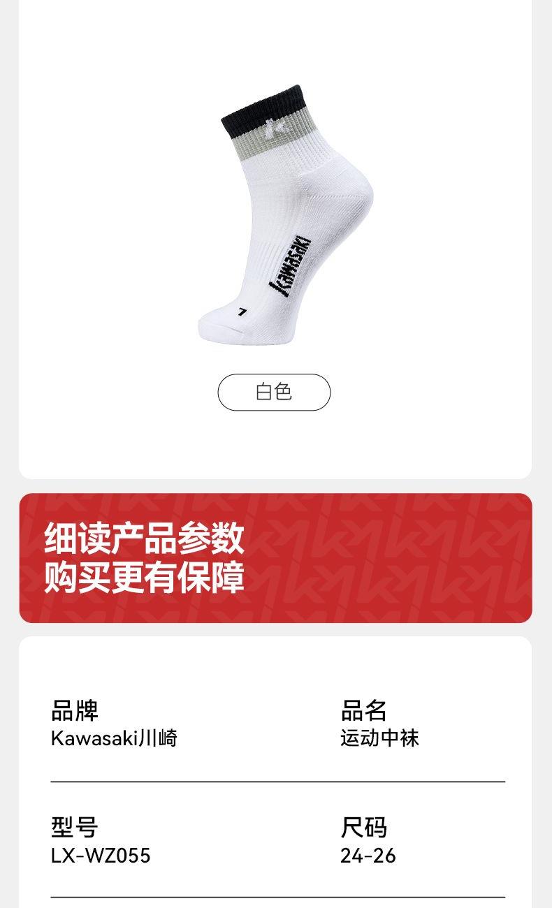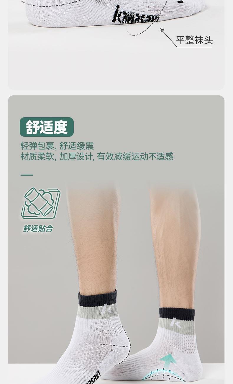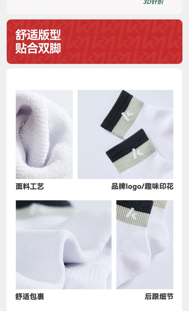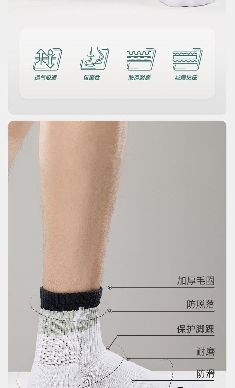 材质:脚面80.9%棉 17.3%聚酯纤维 1.8%氨纶 弹力指数:高弹 尺码:均码 颜色:白色 适用:运动健身/日常休闲 1.防臭,抗震防滑,透气吸湿 2.轻弹包裹,舒适缓震 3.材质柔软,加厚设计,有效减缓运动不适感 4.3D立体支撑,保护足弓
