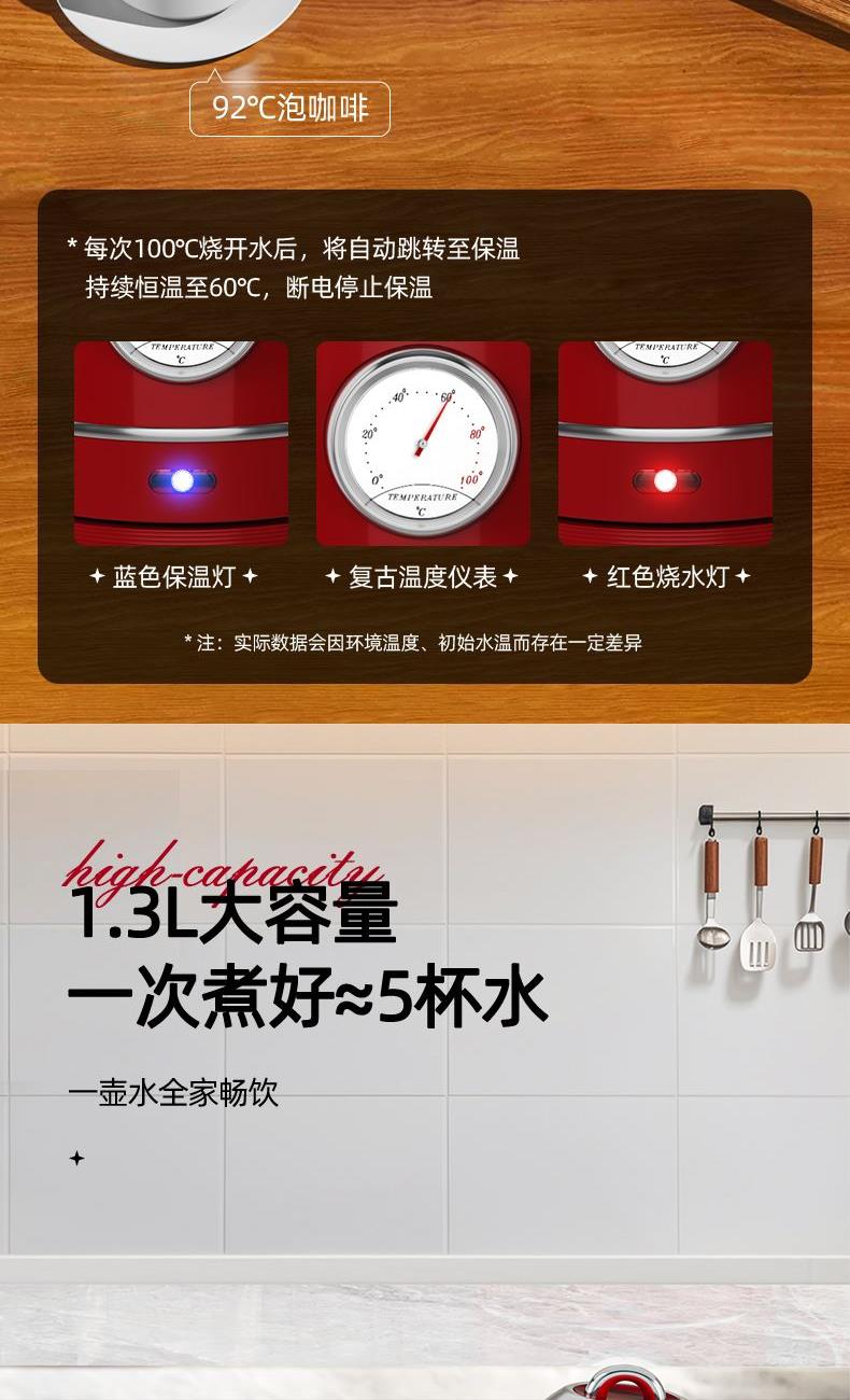 7、英式复古温度仪表,灵感来源于50年代老爷车,烧开自动保温