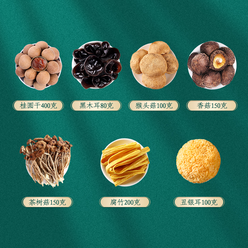 富昌东北黑木耳80g 富昌猴头菇100g 富昌茶树菇150g 富昌香菇150g 富昌丑银耳100g 富昌腐竹200g 富昌桂圆干400g