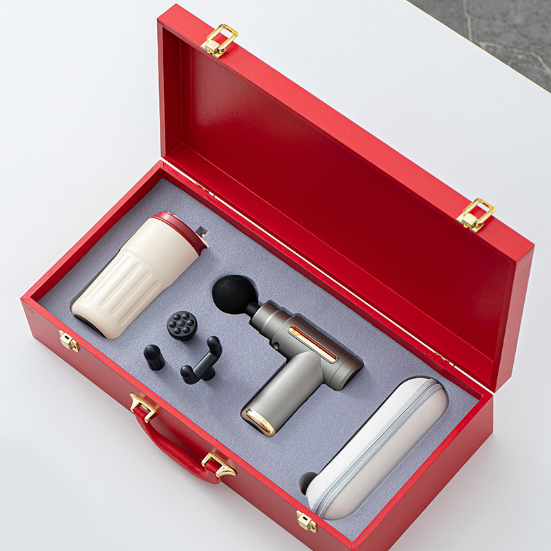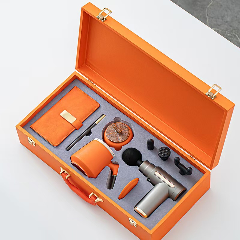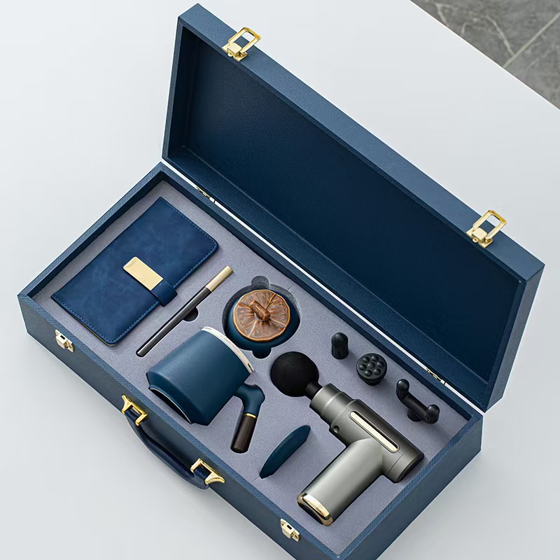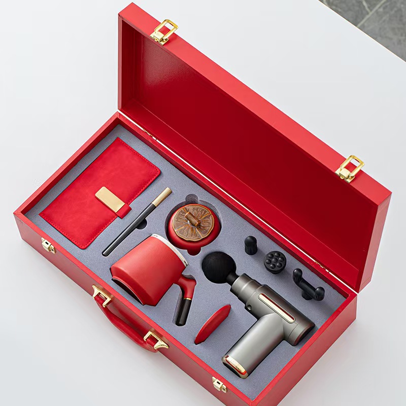 配 制: 1筋膜枪 温显杯 两用伞或 1筋膜枪 办公杯 茶叶罐 写字笔 充笔记本 锦盒 规格:筋膜枪:17.4*14cm 温显咖啡杯 15*6.7cm 颈椎仪:300毫安 办公杯14.5*10.4cm 茶叶罐9.6*9cm 礼盒47.9*23cm 工艺:商务实用性礼品,上班族刚需产品。专业级筋膜枪,6档变速,4种按摩头,液晶触屏,深度缓解肌肉酸胀。晴雨两用伞,纳米拒水黑科技,遇水即干,双倍防晒。