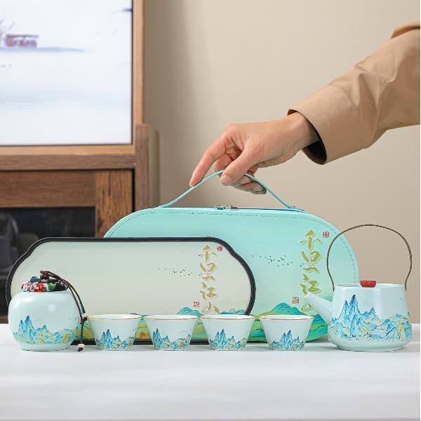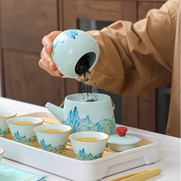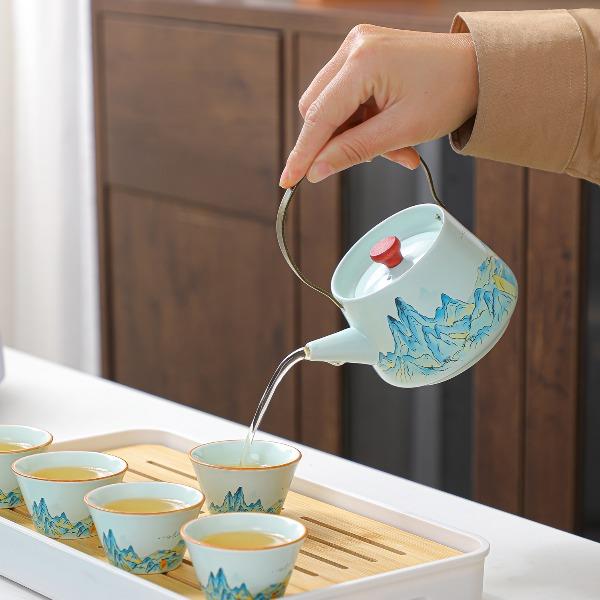 瓷语花香千里江山汝窑提梁壶茶具