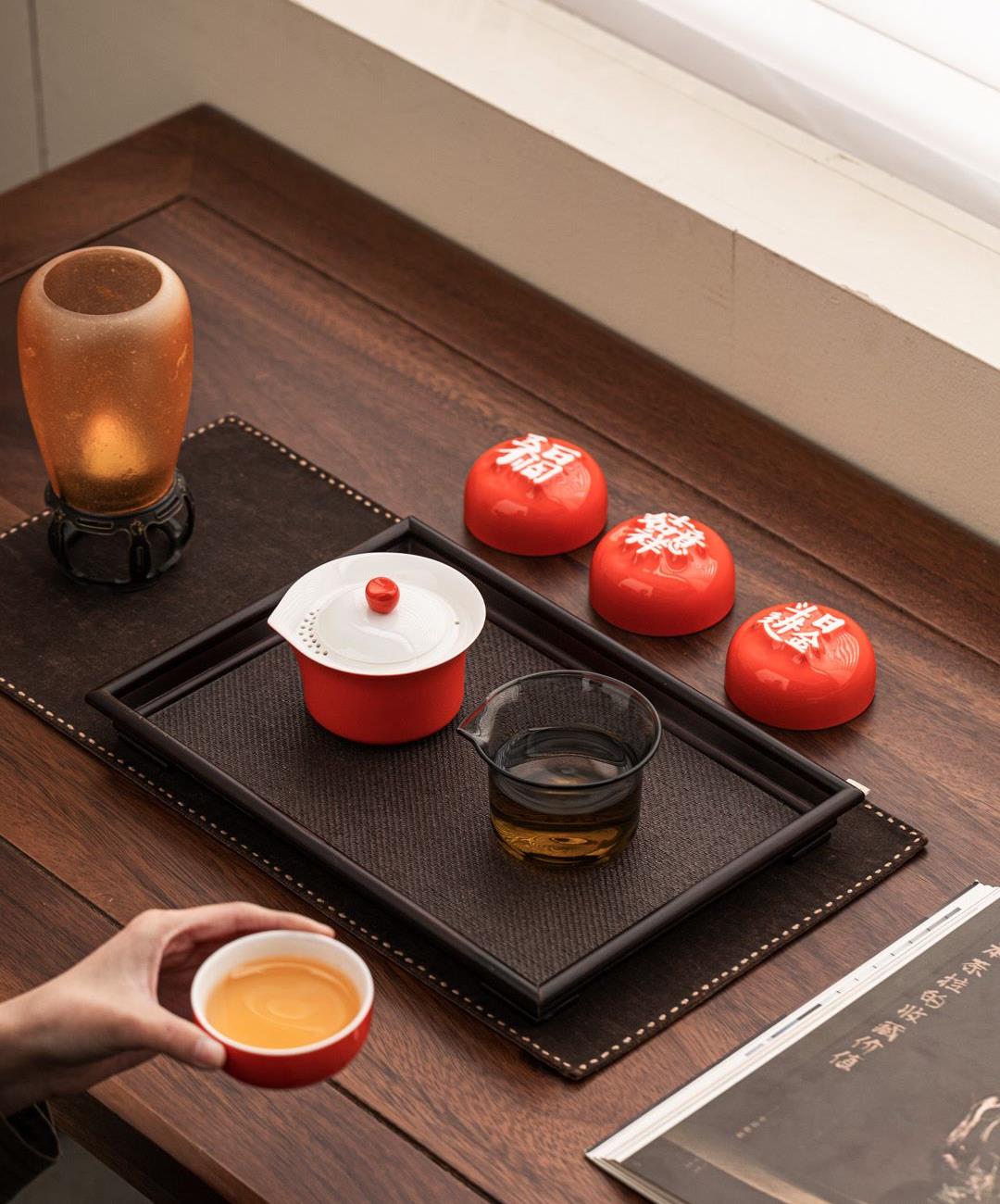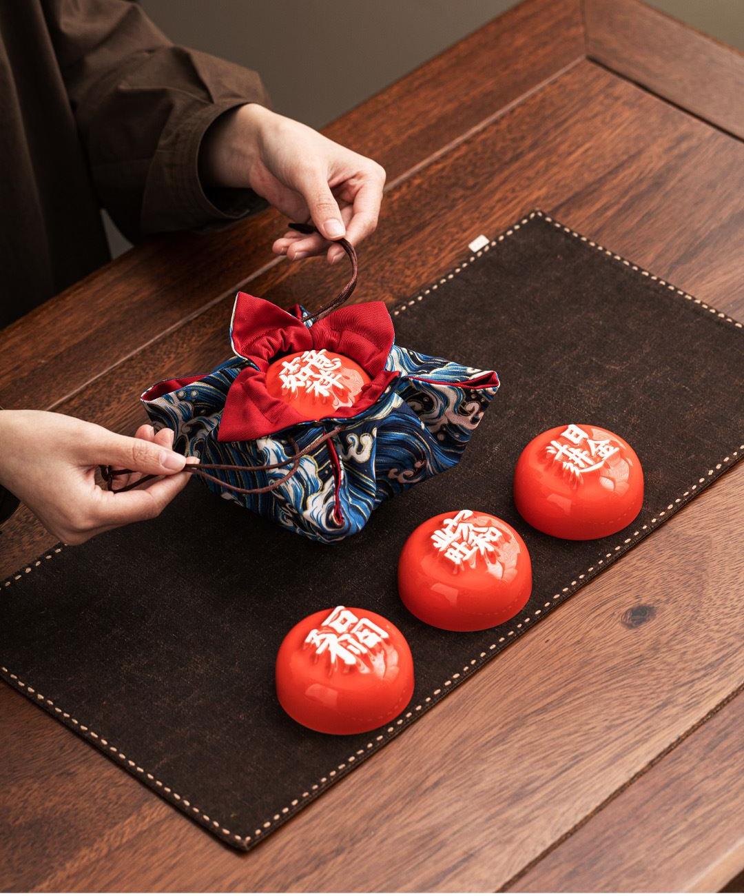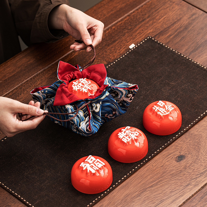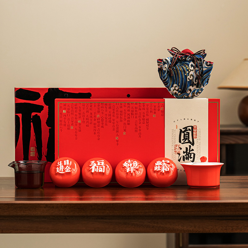 1:汉字杯历经1300度以上高温烧制,不含铅和镉等重金属。 2:杯底全新设计祝福文字,手工塑形。 3:休闲茶桌与旅行便携两用设计。 配置:合意杯*4(吉祥如意+日进斗金+家和业旺+五福临门) 快客易泡壶*1 玻璃公道*1 材质:白玉瓷胎 颜色:霏红