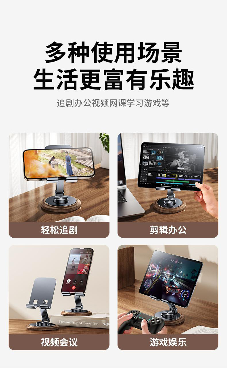遥里逊木纹旋转桌面金属手机支架YLX-02-96