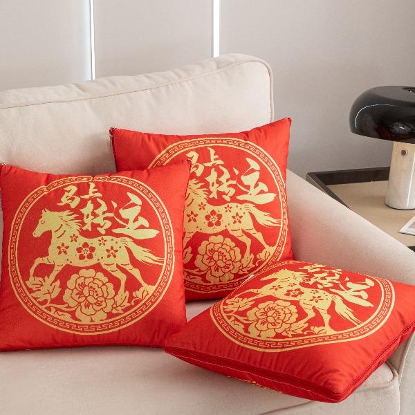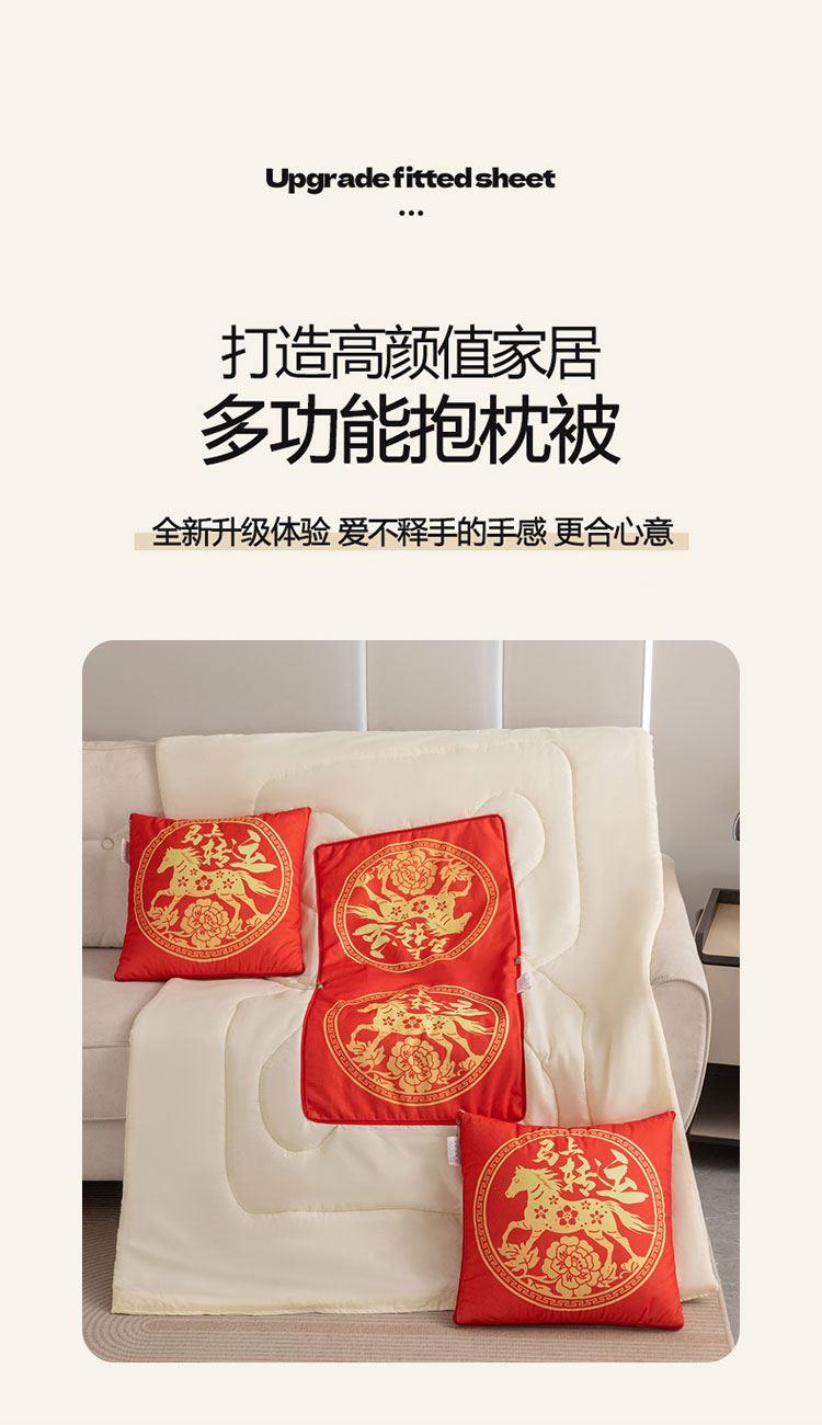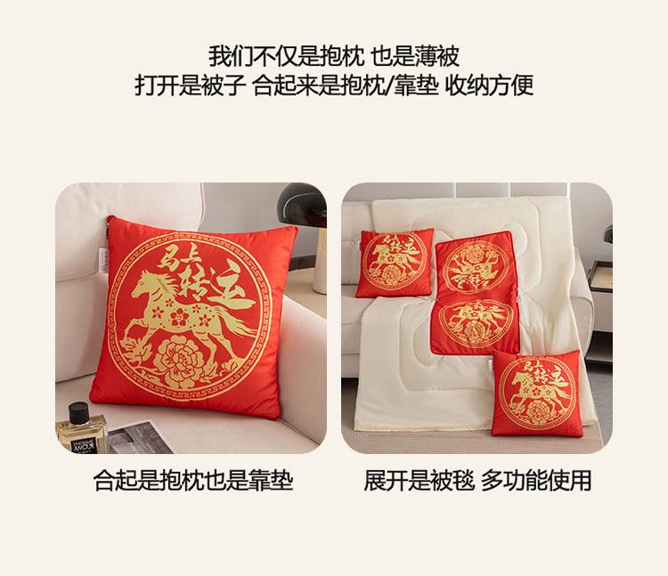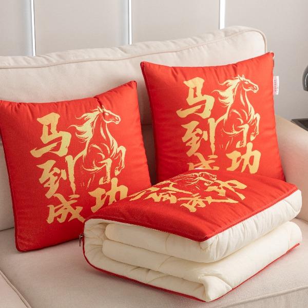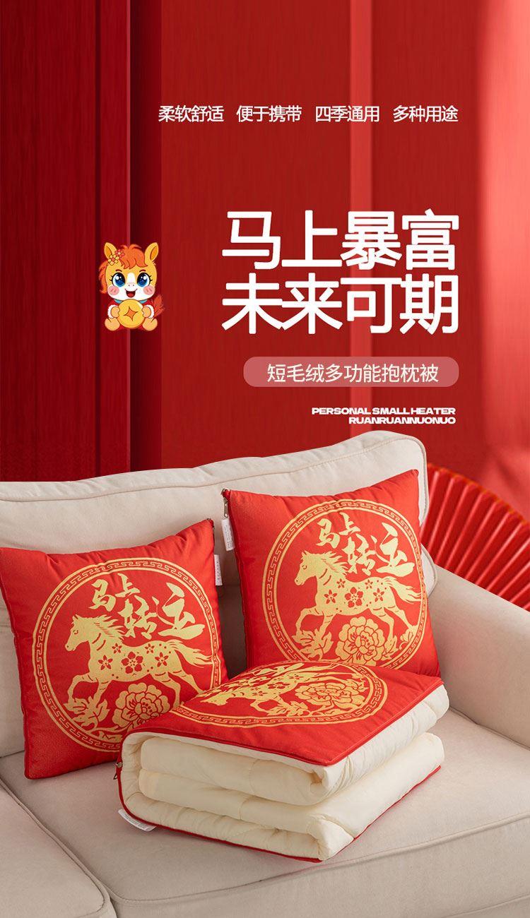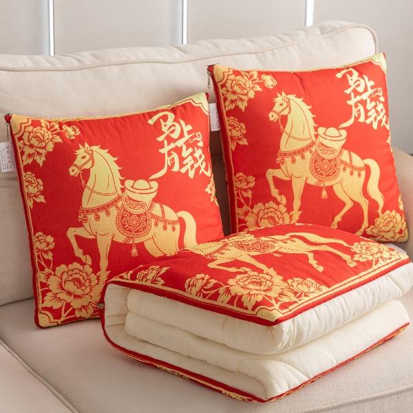 花花公子-家纺-开门红马年抱枕被-马上有钱