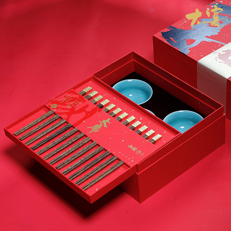 鸡翅木筷x12 景德镇青云陶瓷碗 x9 双层式精装礼盒手提袋*1 精美包装双侧礼盒层层惊喜免费定制logo可私人定制 精选景德镇青云陶瓷碗10只寓意十全十美 高品质精选南美鸡翅木黄铜筷头红木筷可私家专属定制年夜享用