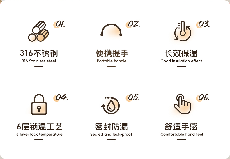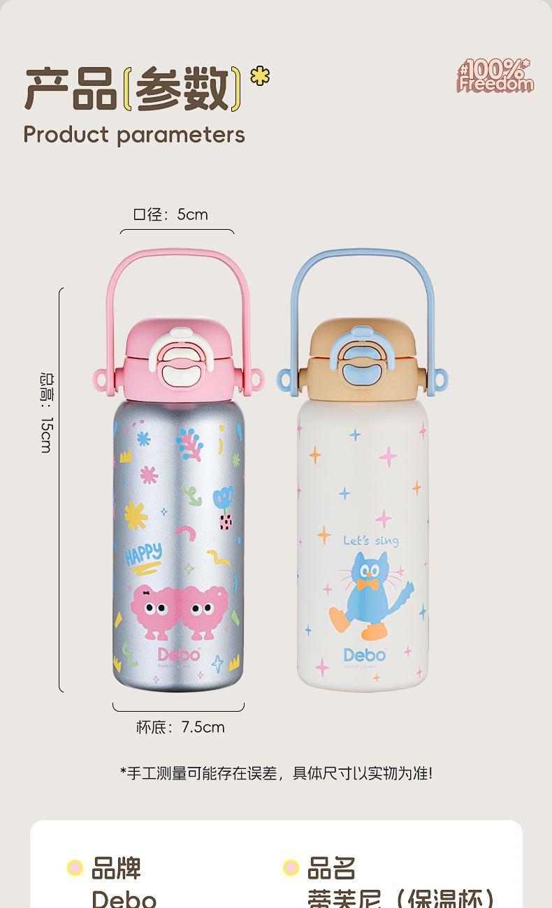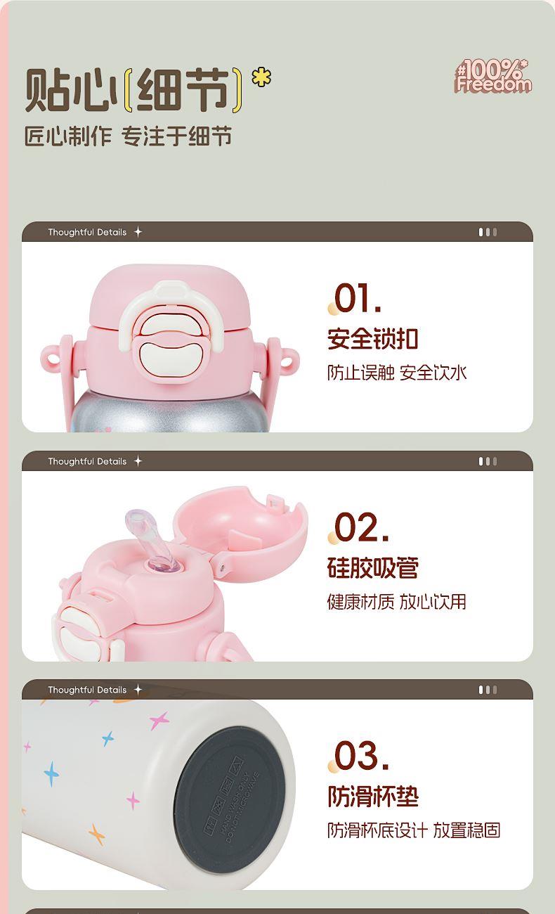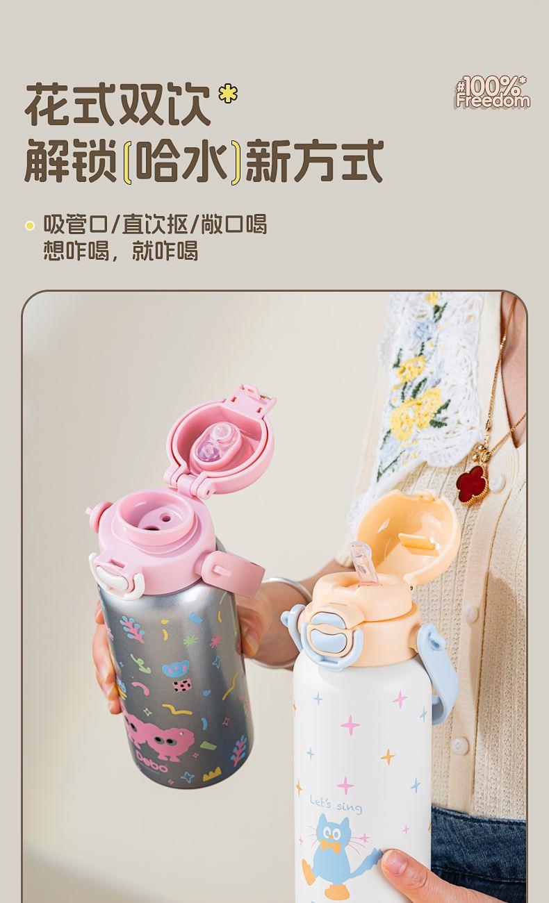 容量:650ml 材质:316不锈钢 颜色:白色/银色 包装尺寸:115*115*251mm 配置:盖子*1、杯身*1、带子*1 1. 316不锈钢内胆,安全无异味,抗氧耐腐,奶液果汁放心装; 2. 多层锁温工艺,长效保温,食品级硅胶吸管,安全材质; 3. 加宽背带,不勒肩膀,轻松受力,可拆卸背带,便携出行; 4. 一杯双饮,满足不同需求。