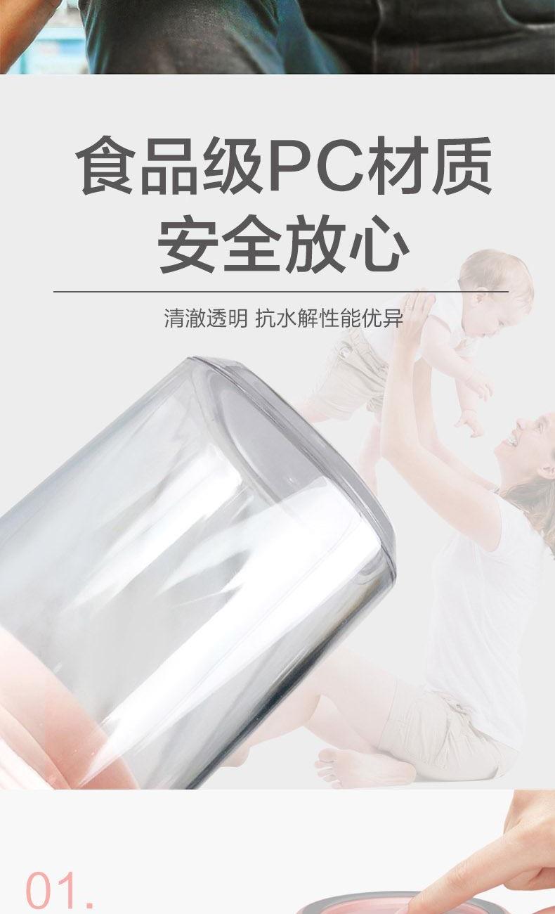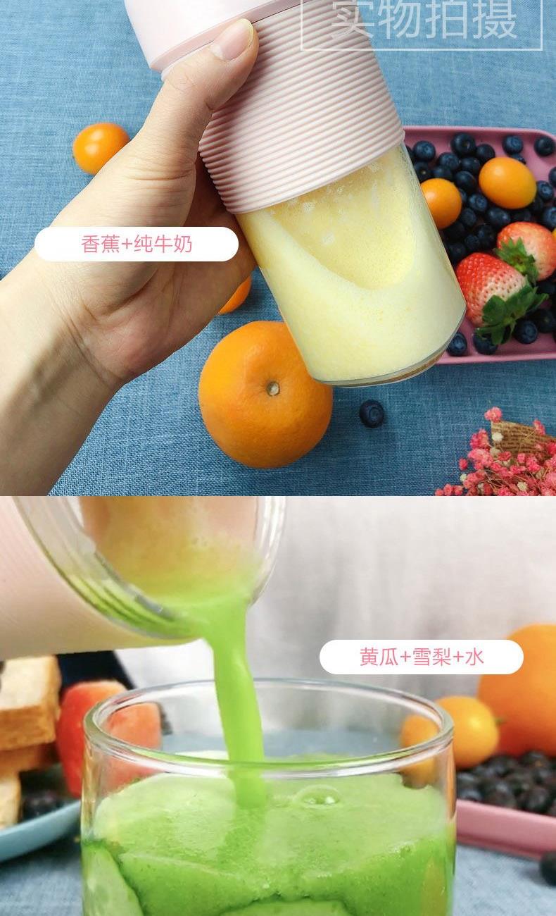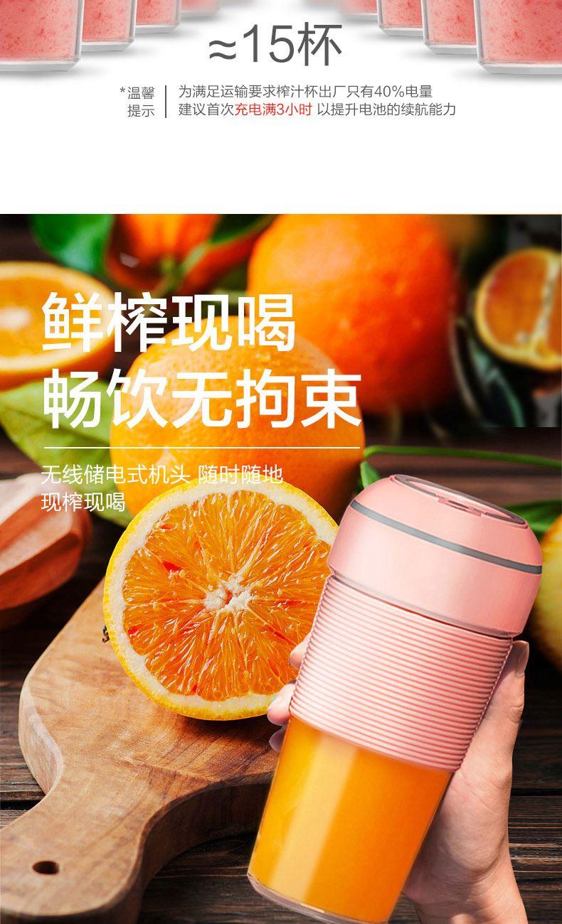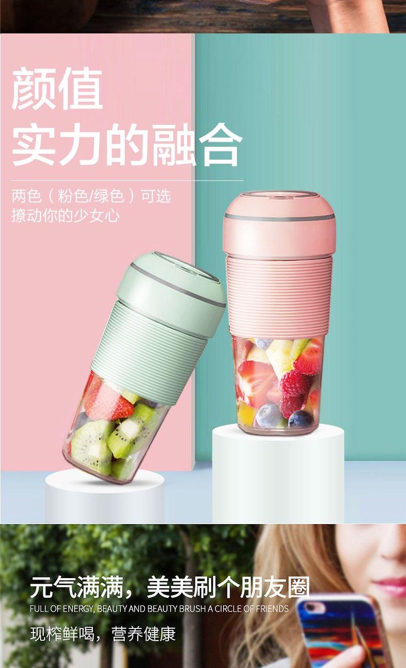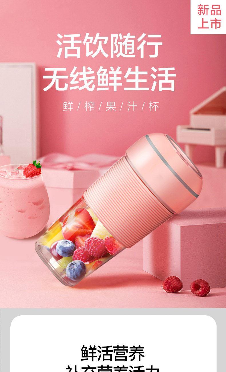 1.轻巧杯体随行便带,304不锈钢刀360°立体旋风无死角搅拌 2.USB便捷充电,3小时充电超长续航USB口充电不受限,3.1500mAh增压动力锂电池 4.无复杂刀组结构,只需简单冲洗即可打理干净 容量:300ML 颜色:粉色