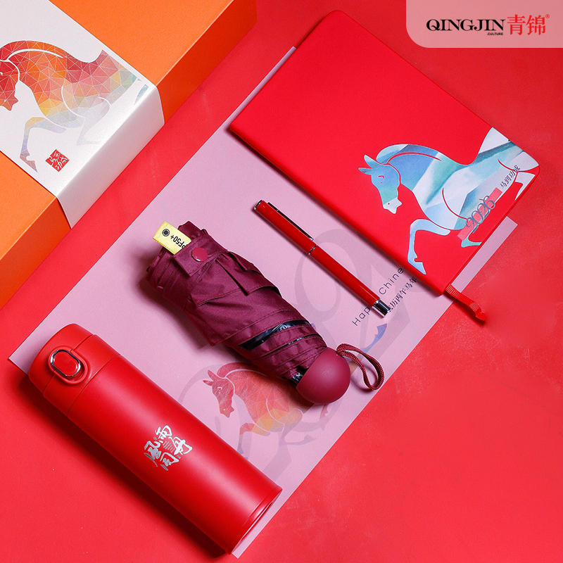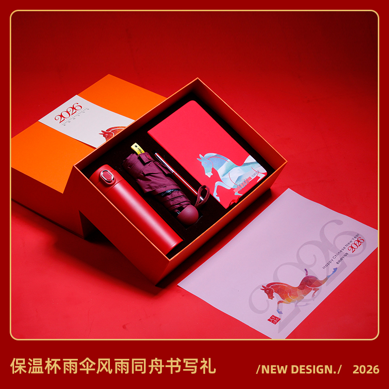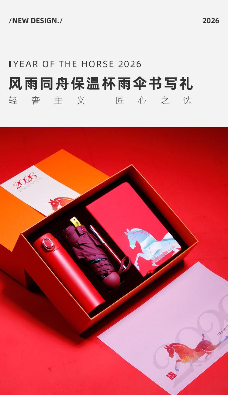 2026马年贺岁-顺风顺水保温杯雨伞商务四件装送客户送朋友