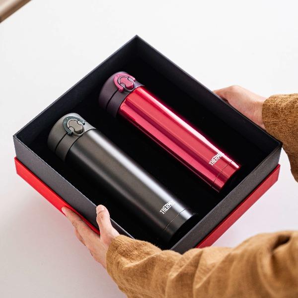 品 牌:膳魔师 颜 色:黑色,红色,灰色,白色 容 量:500ml+500ml 组 合:4个颜色随机组合,常规黑色和白色 定 制:可以根据客户要求定制,杯身及礼盒加LOGO 配 置:精美手提袋,精装礼盒,可根据要求增加贺卡等