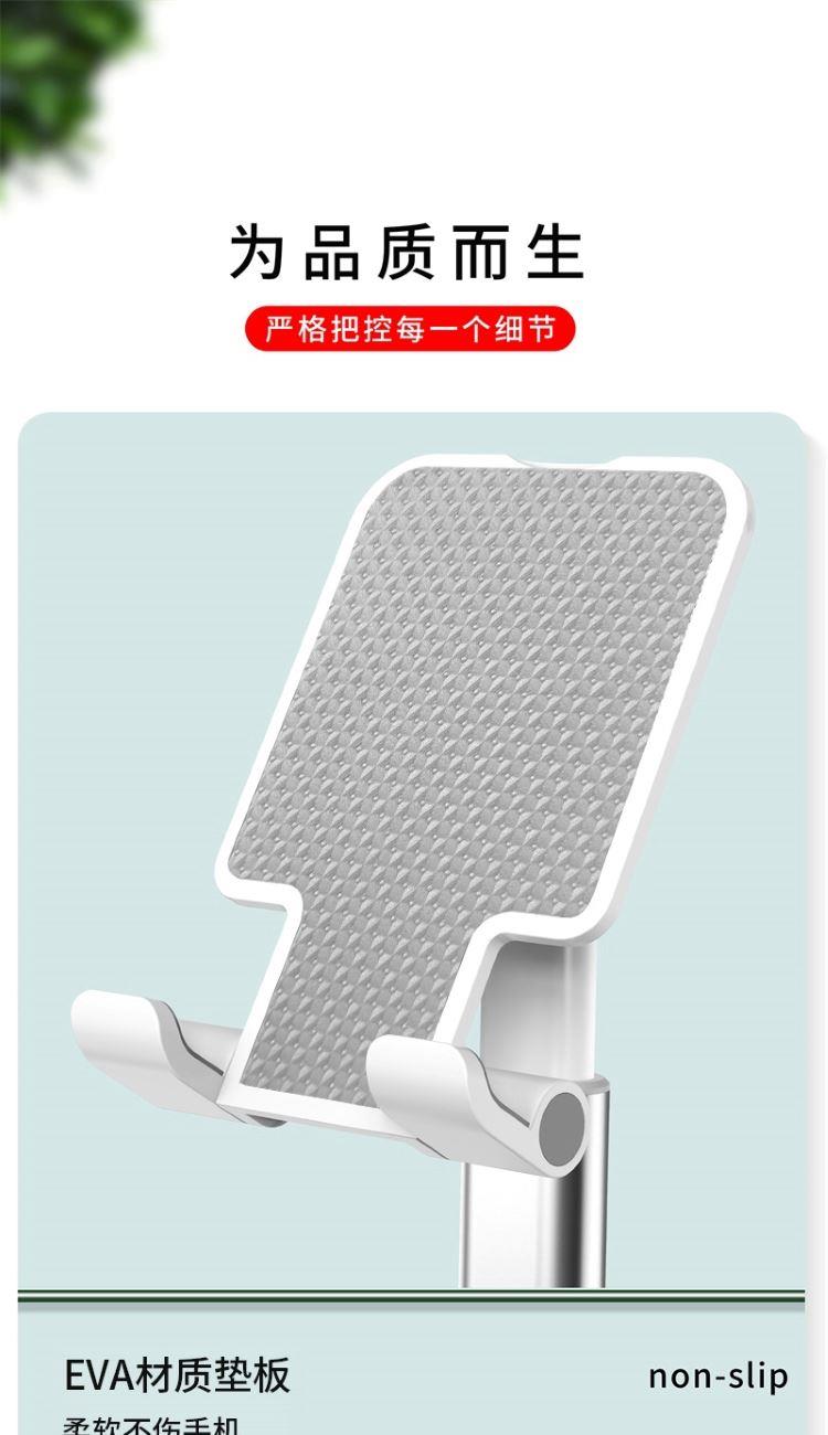 产品规格:11*6.6*15.6cm 材 质:PS+海绵 颜 色:黑色 白色 绿色 粉色 产品净重:120g 适用机型:手机 平板电脑 产品特点 轻松收纳 生活更简单 上下72度 随意调节 稳固防滑 不易晃动 迷你小巧 便于携带 高度可升降 多角度调节固定