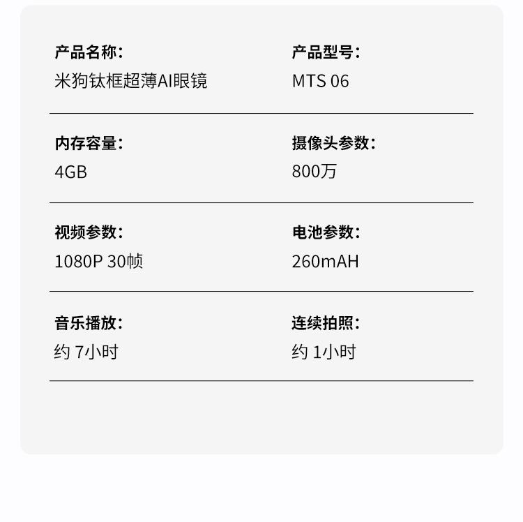 米狗钛框超薄AI眼镜MTS06