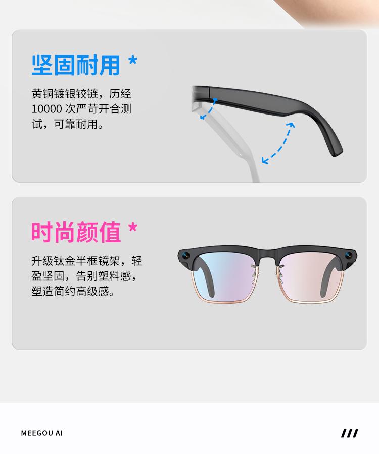 轻量化设计确保佩戴舒适,钛金属框架兼具质感与耐用性。无论是商务办公的高效协同,还是旅行中的随心记录,这款眼镜都能以 “科技 + 实用” 的双重价值,成为你的随身智能搭档。
