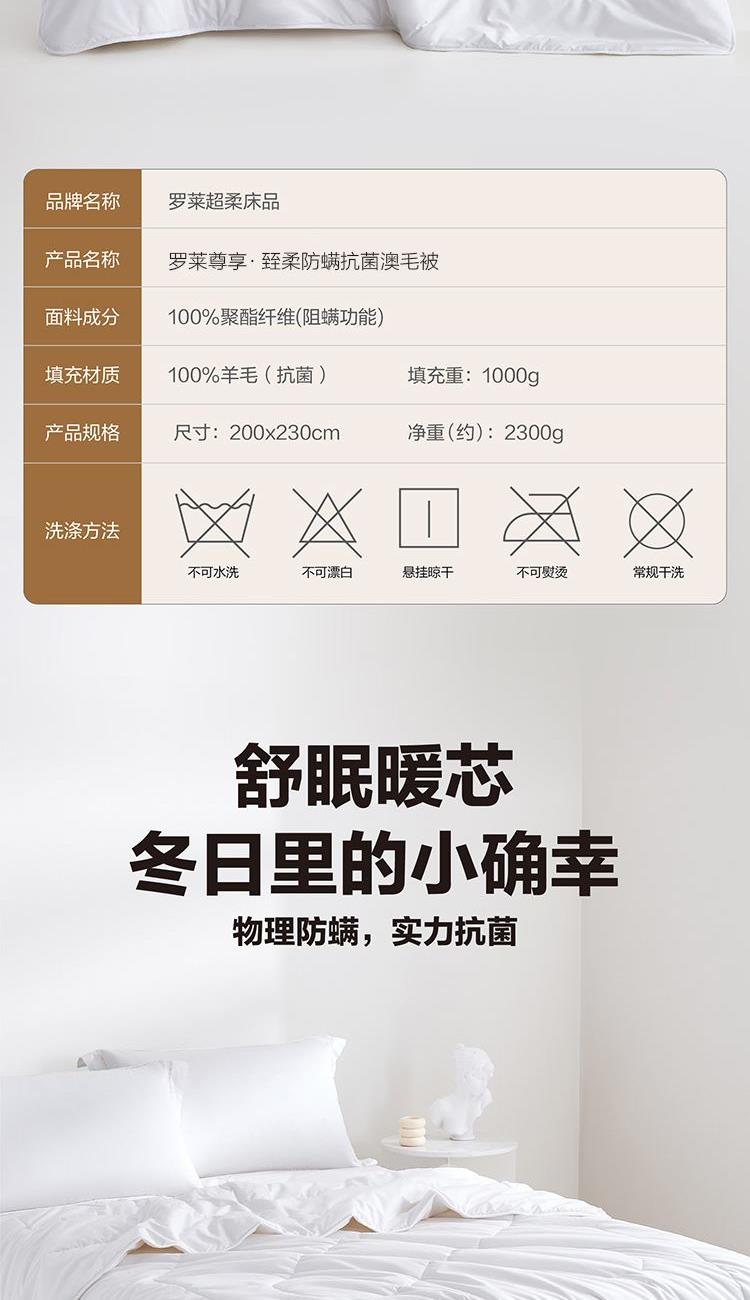 罗莱尊享·臸柔防螨澳毛被200*230cm