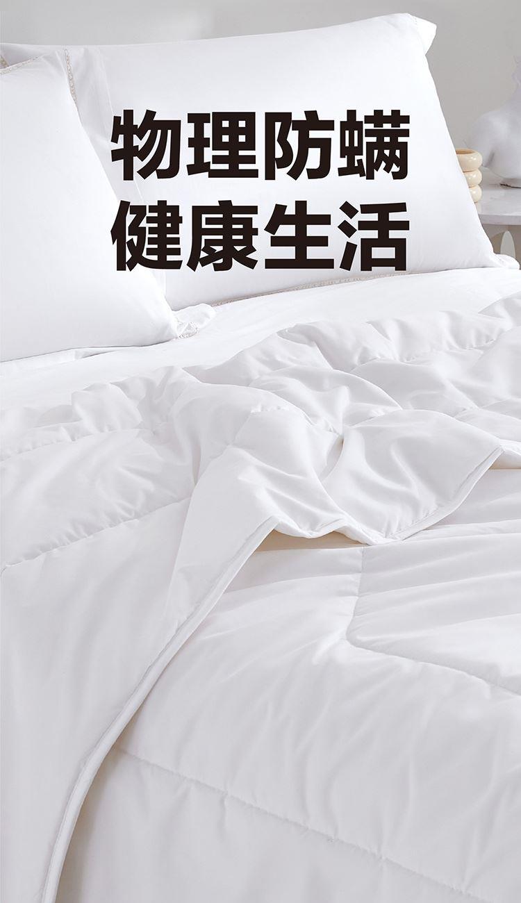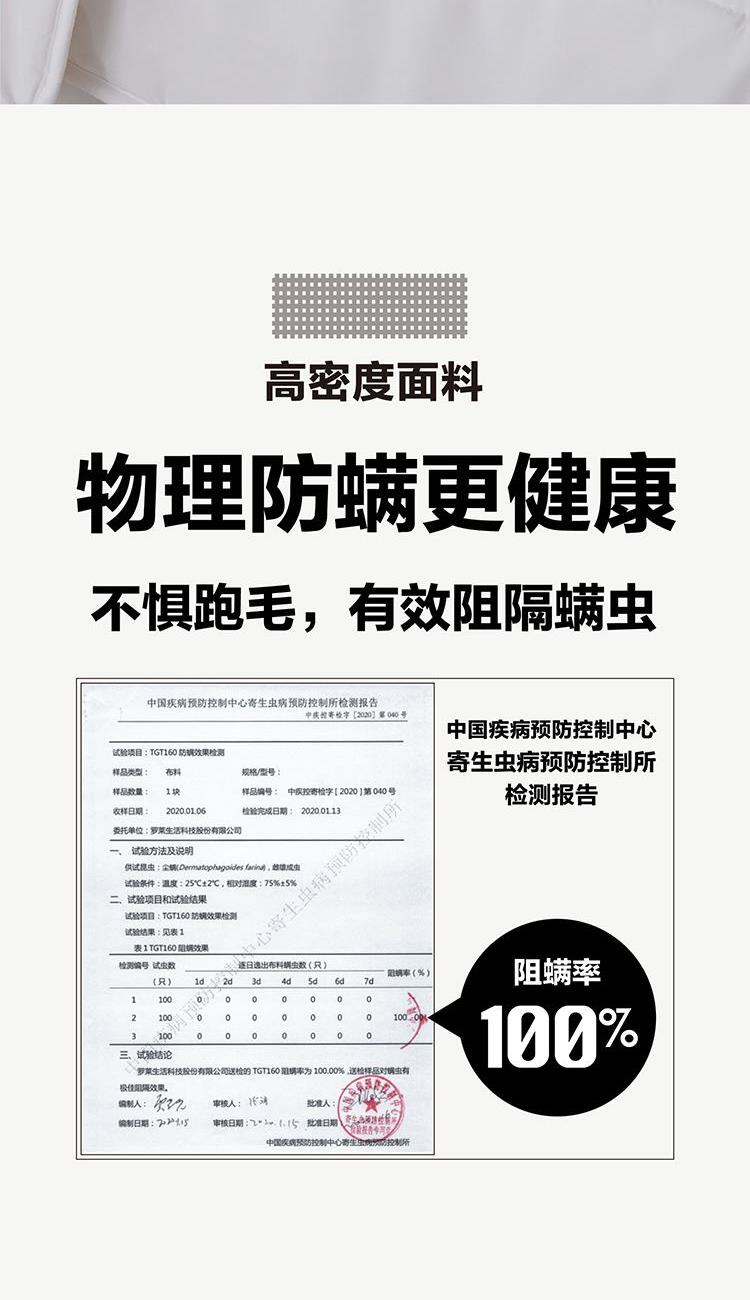 采用高密度磨毛防羽面料,微米级物理防螨,柔暖顺滑,大大降低被子的摩擦声,防止羊毛从缝隙间钻出,享洁净睡眠;