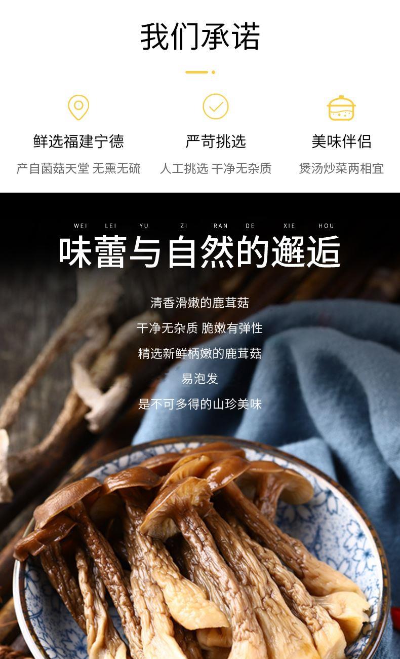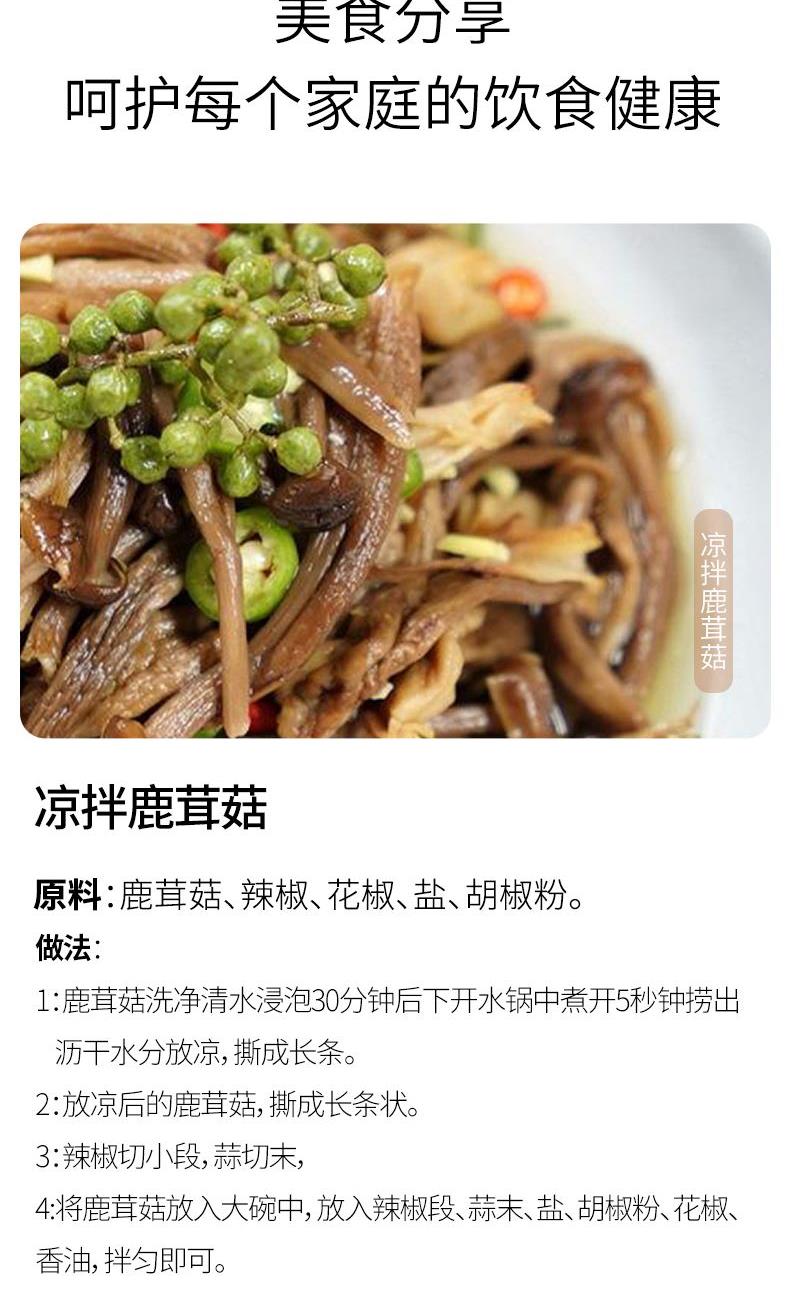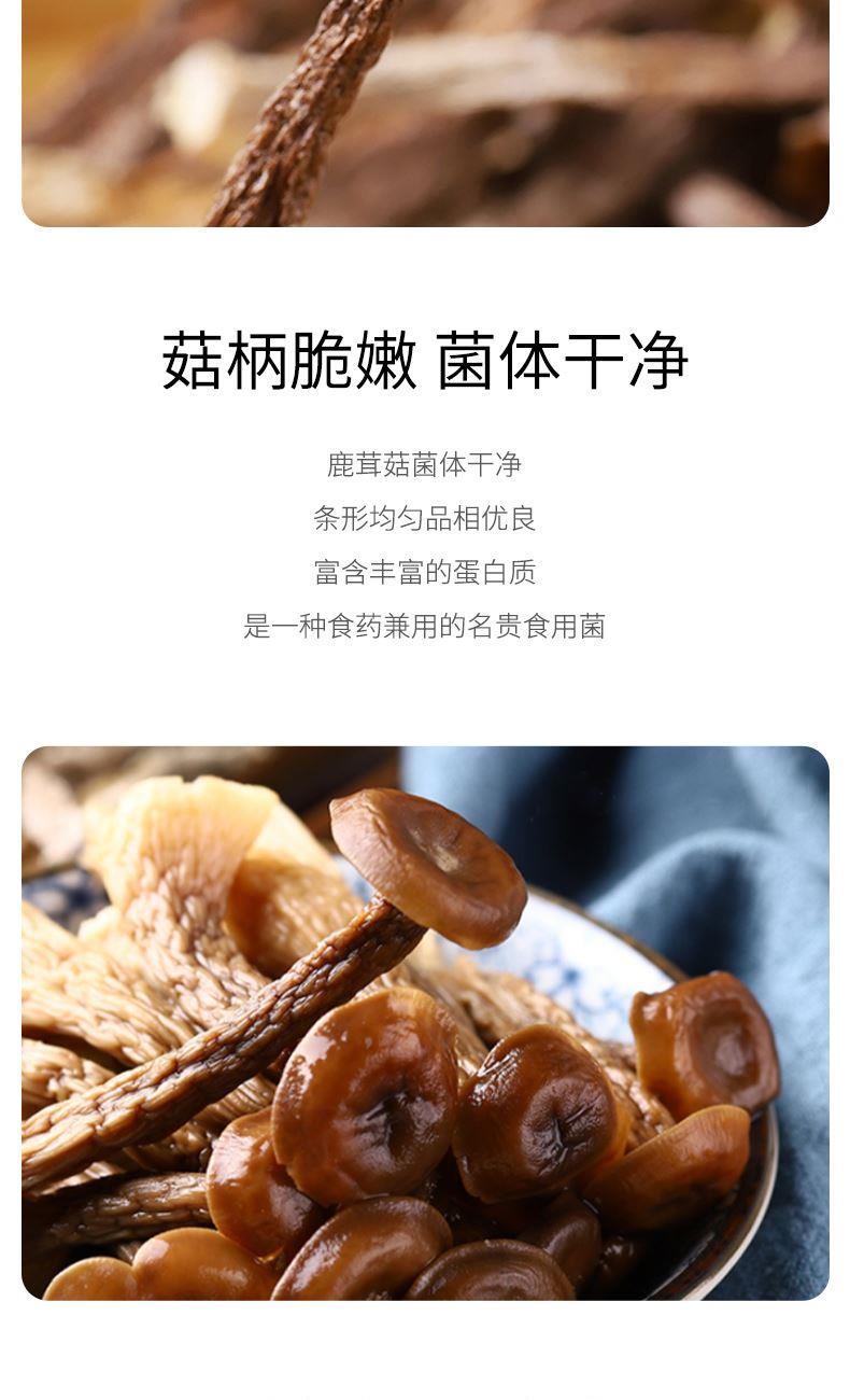 配料:鹿茸菇 原料产地:福建省宁德市县 净含量:85克 保质期:12个月 生产日期:见包装物打印处 食用方法:用清水浸软洗净后,可煮、炖、炒、烩等。 鹿茸菇学名荷叶离褶伞,菇体灰白色,因形似幼小的鹿角,故而得名。烹调后口感脆送适度,香味浓郁,菇盖滑嫩,肉质饱满有弹性,如配上猪肉或鸡肉共炒,则食味更加鲜美。