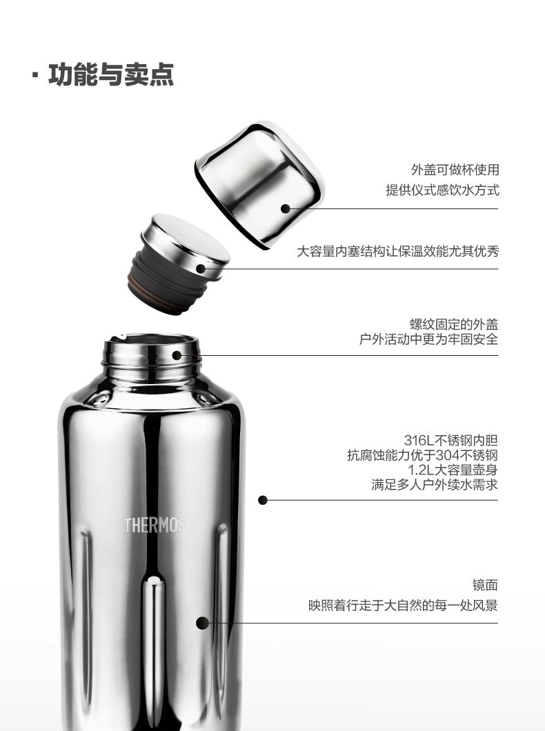 膳魔师逐光系列316不锈钢TCHD-1200S