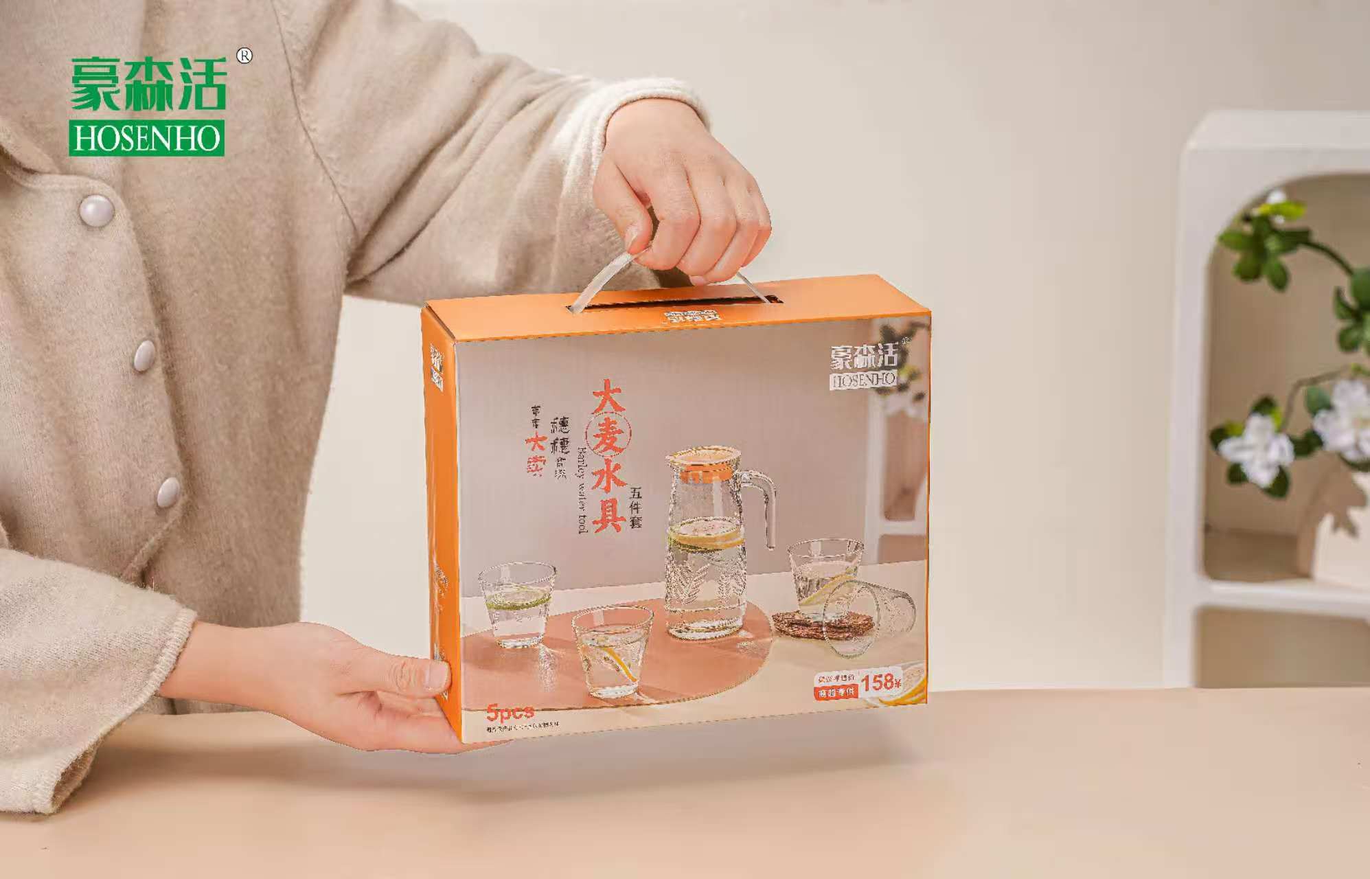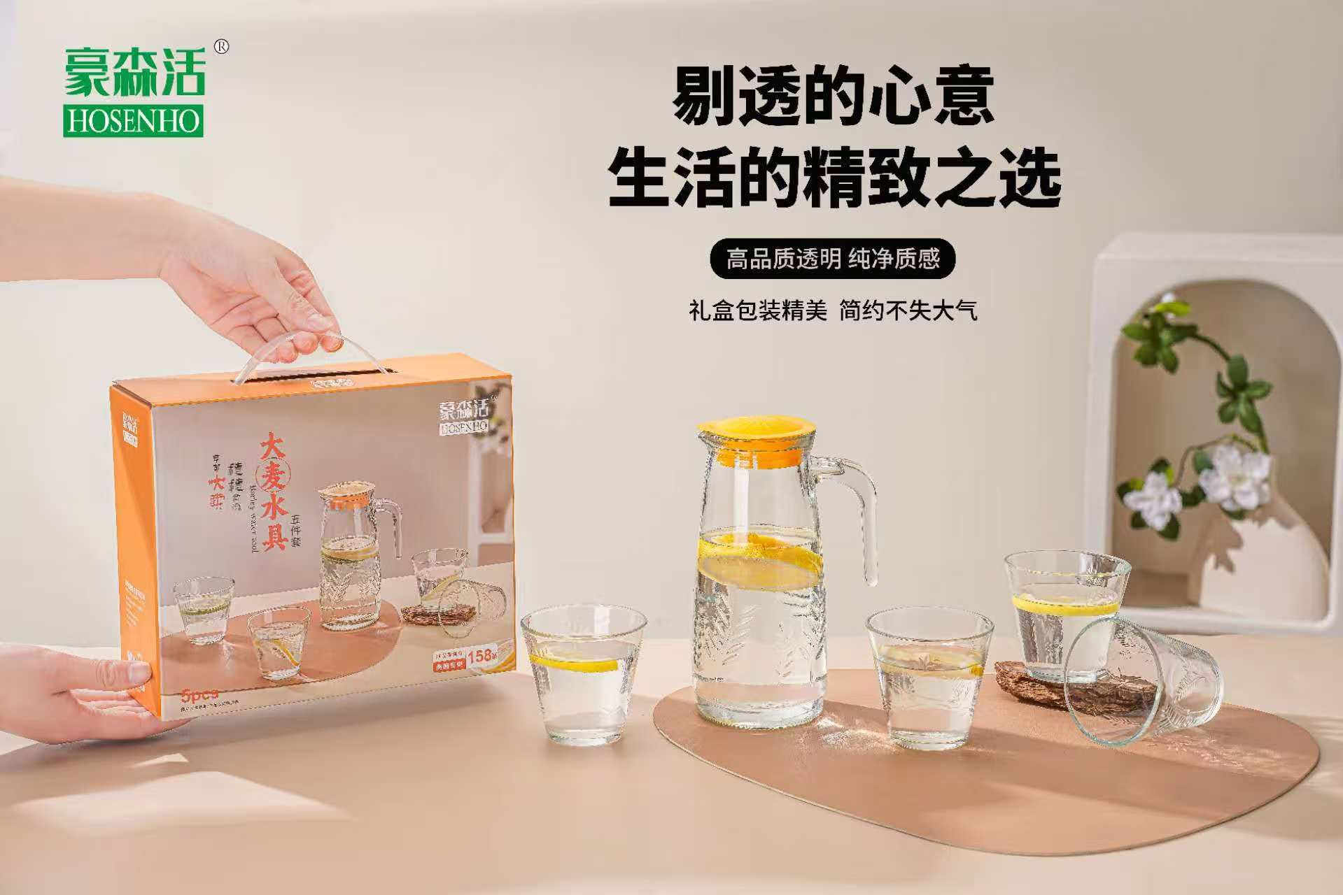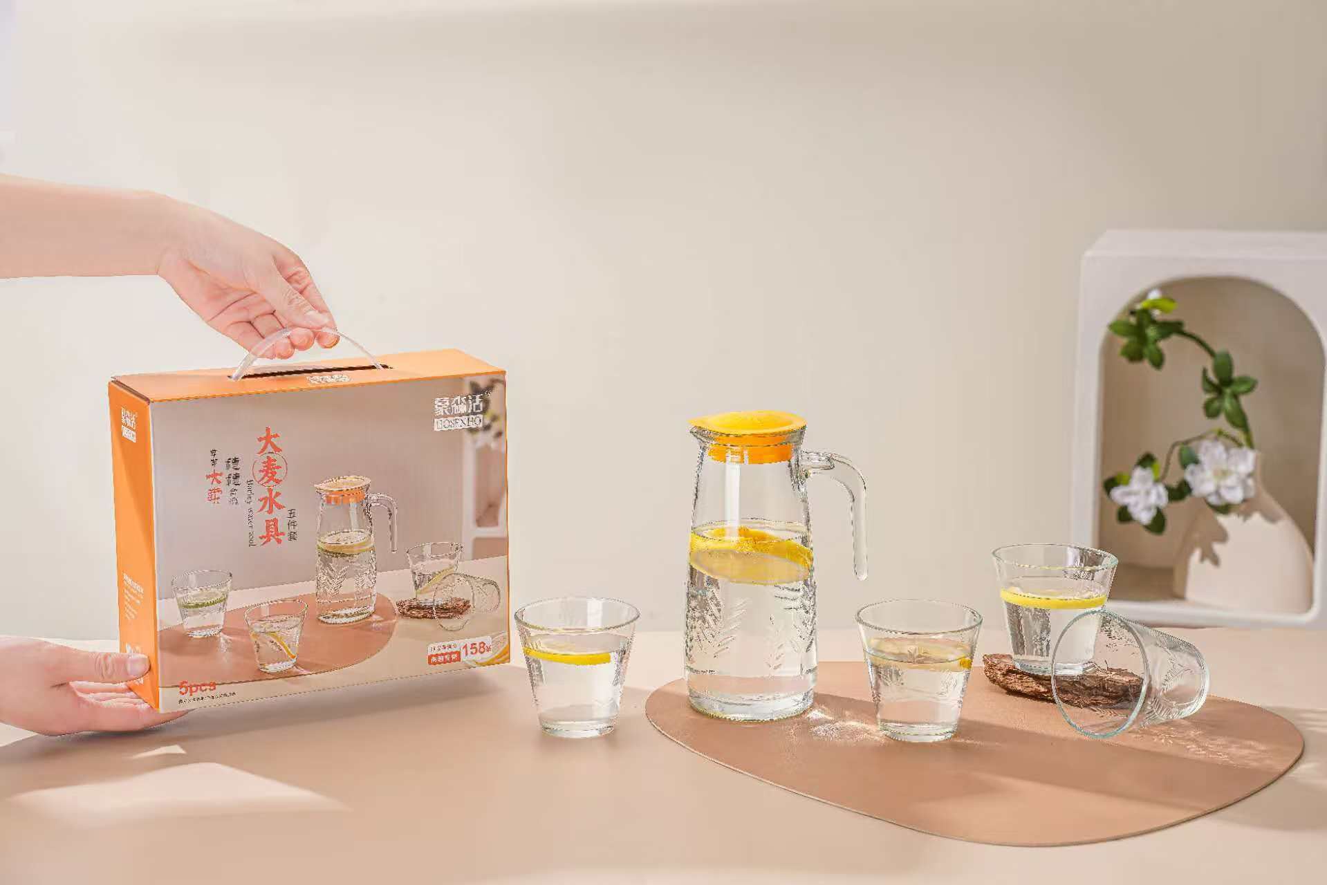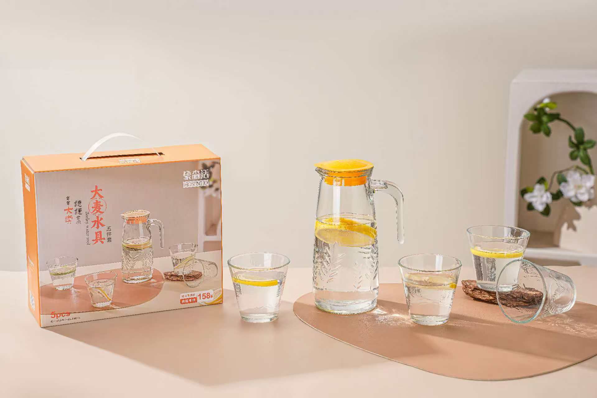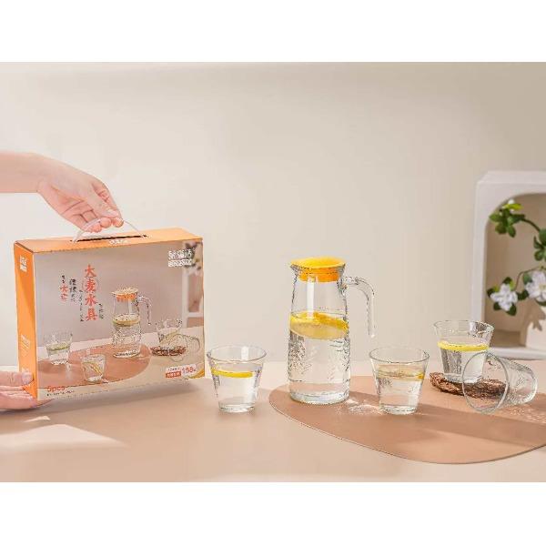 大麦水具五件套 规格:1*16套 货号:DMSJ-L5 壶体容量:850ml*1 杯子容量:200ml*4 彩盒尺寸:24*9.2*21cm 外箱尺寸:50*39*43cm 条码:6976254570436