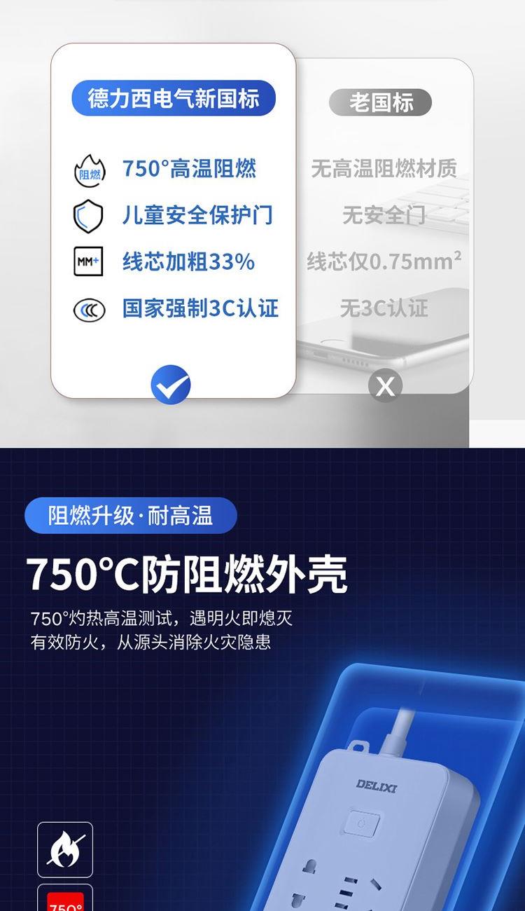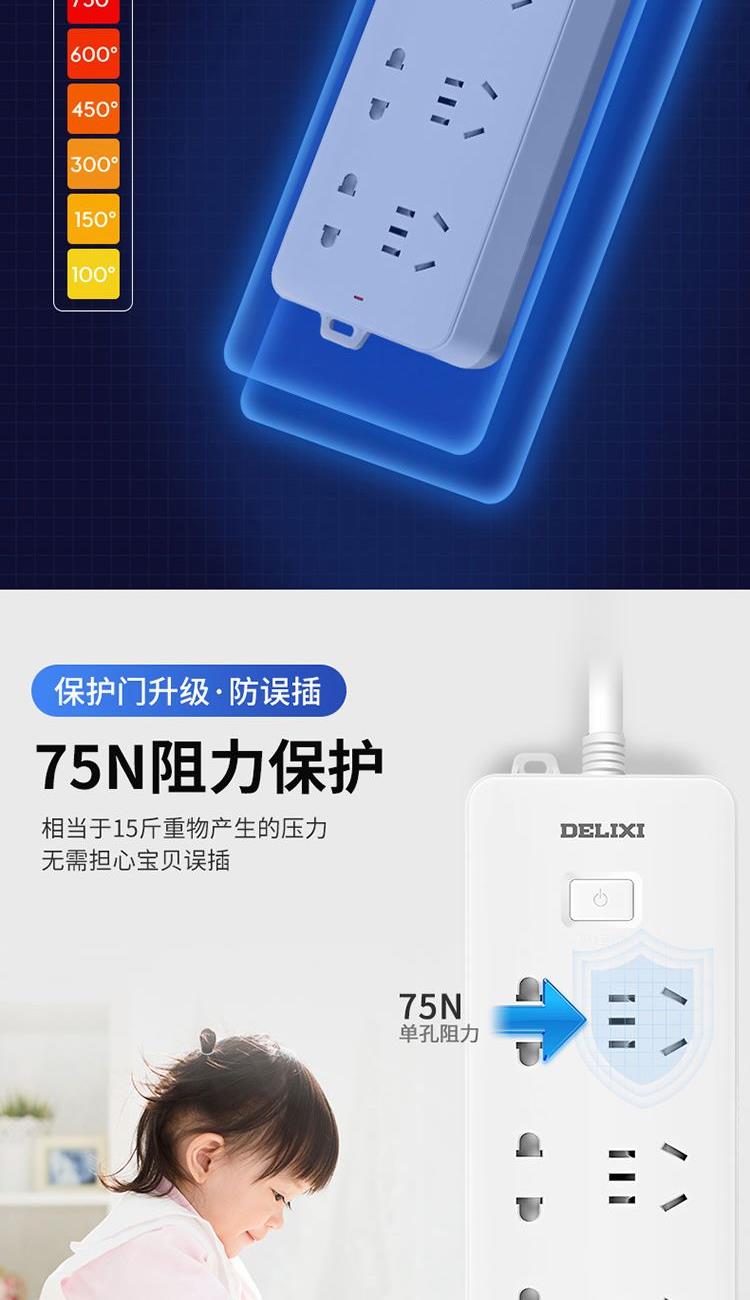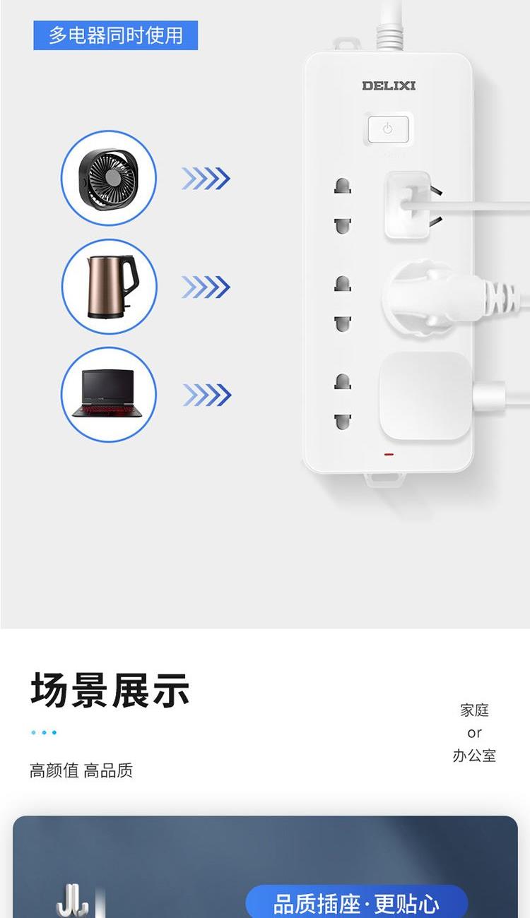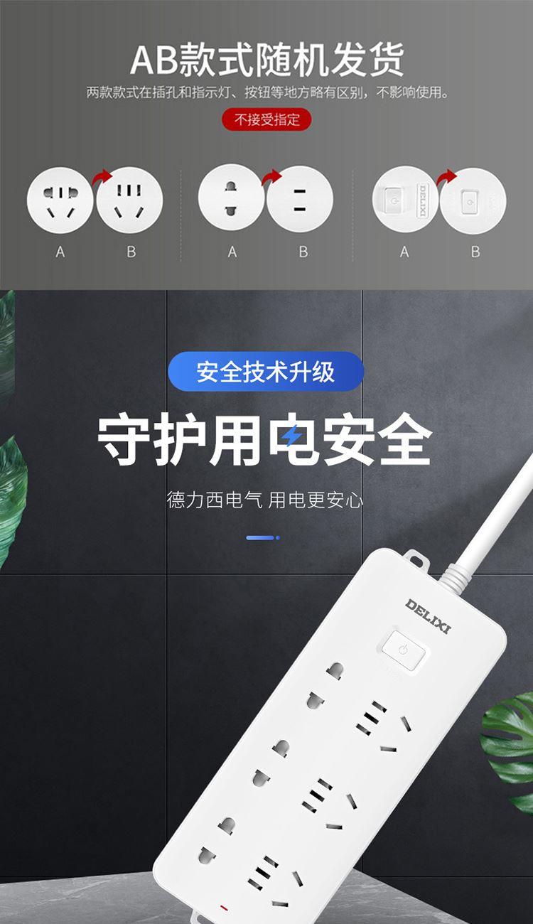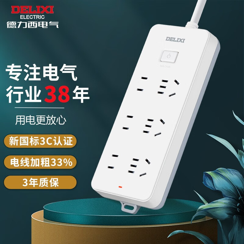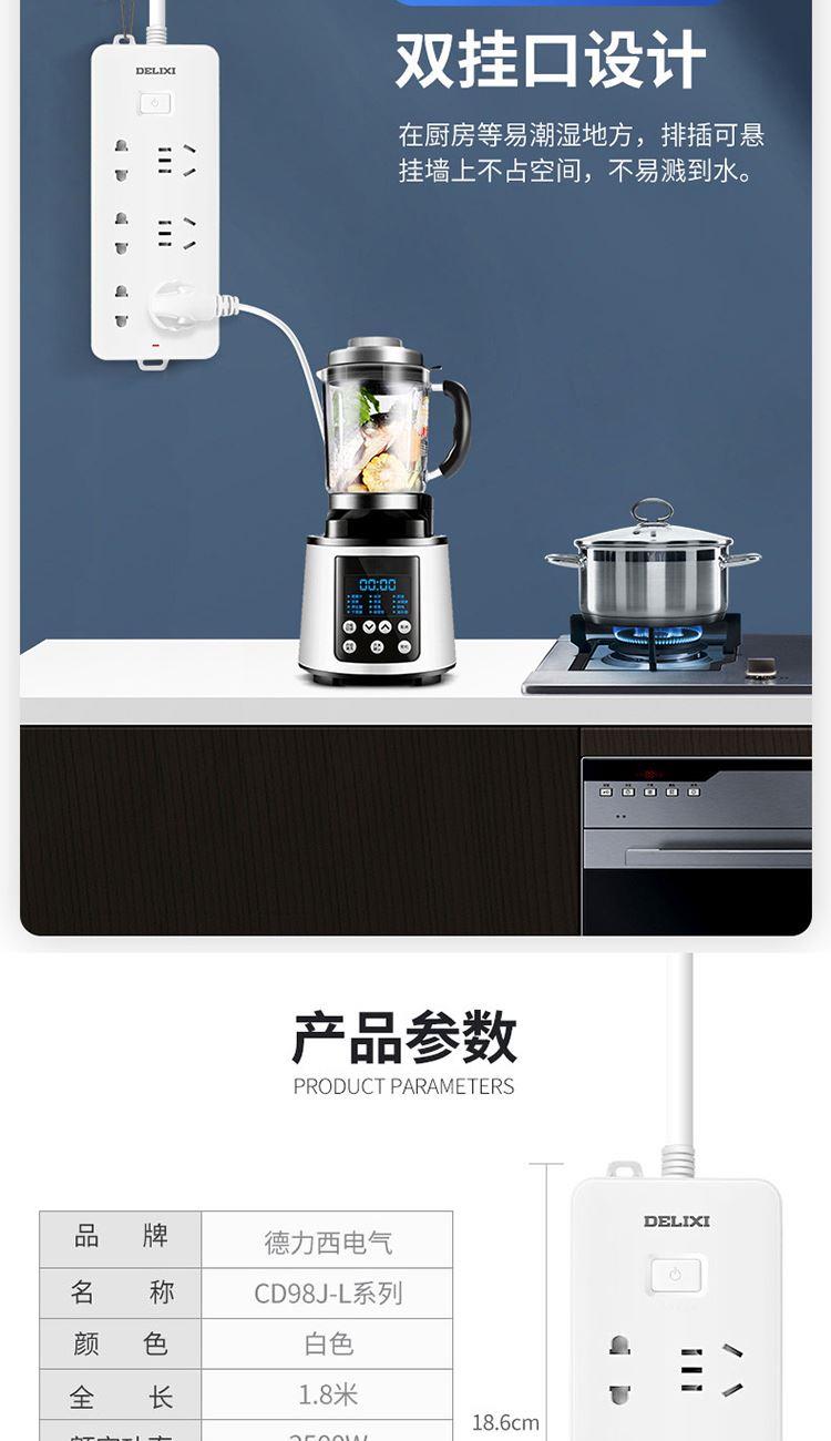 德力西电气CD98J-L排插三位五孔+三位二孔1.8米