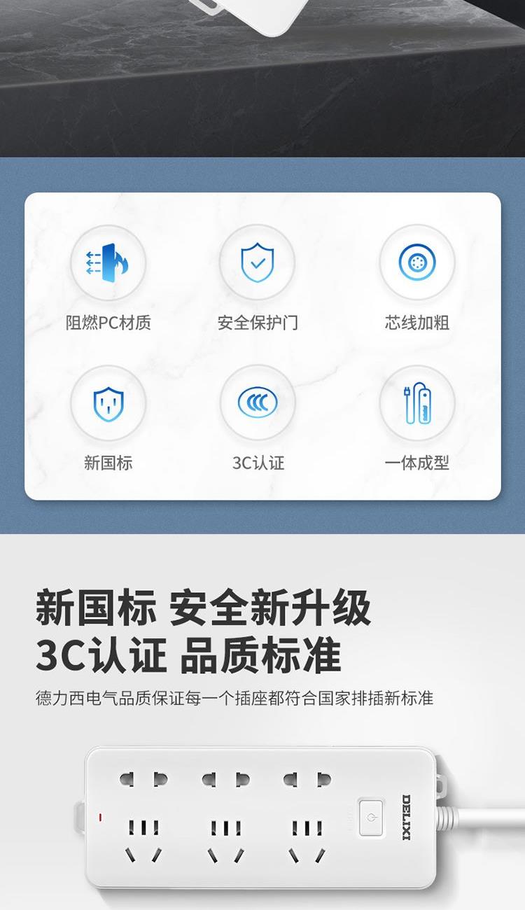 产品型号:CD98J-LK3X3Z 1.8 产品尺寸:186*73*30mm 适用标准 :国标 额定电流:10A 产品重量:0.3kg 额定电压:250V 产品全长:1.8m 产品开关:总控开关 产品位数:总控、三位五孔+三位二孔、有线