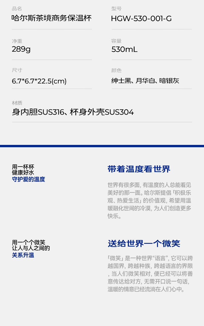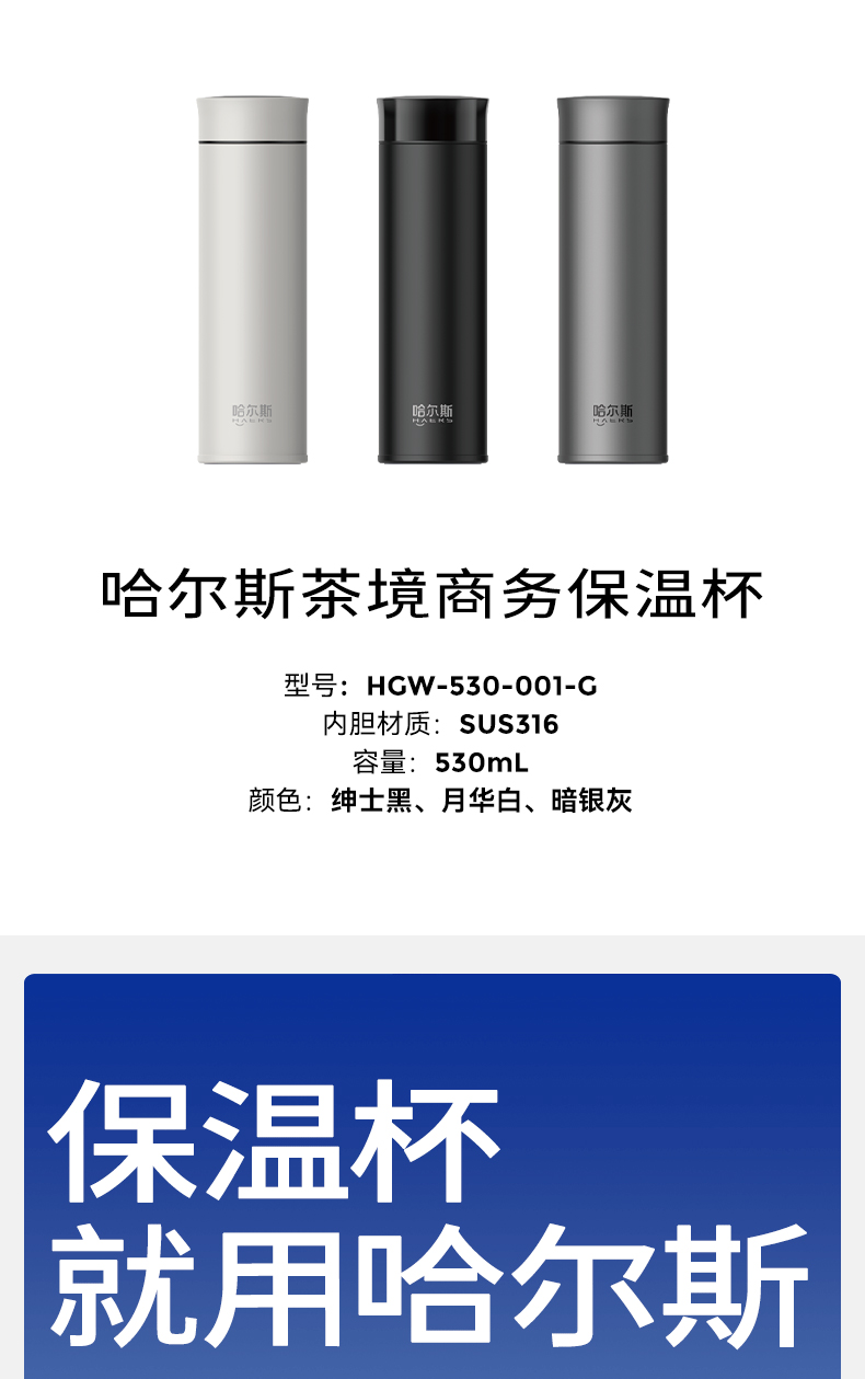 哈尔斯茶境商务保温杯HGW-530-001-G