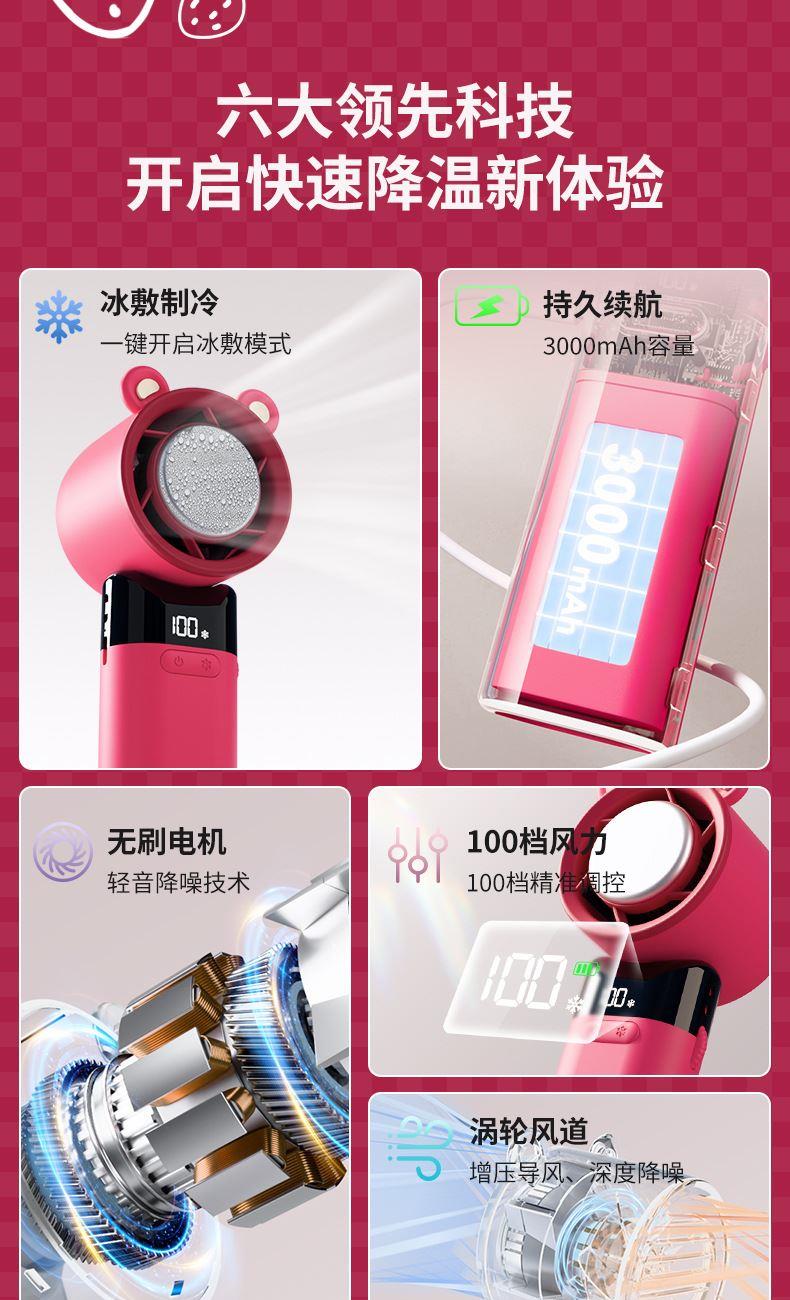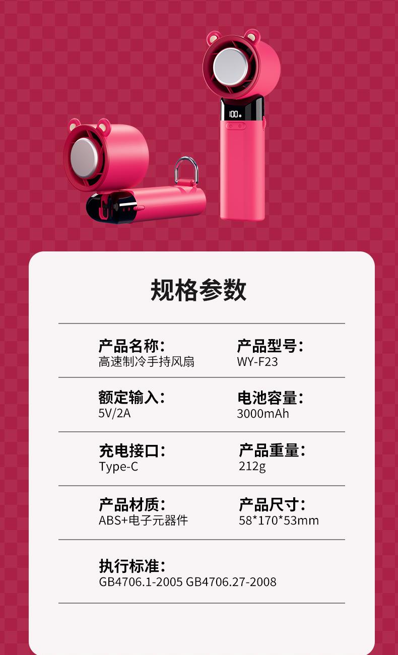 【产品尺寸】58x53x171mm 【包装尺寸】61*59*174.5mm 【颜色】灰紫色、米白色 【产品重量】210g/253g 【产品材质】ABS 【电池容量】3000mAh 【电源输入】5V 【使用时间】2-9小时 100档无极调速,手持便携。可折叠 小身材,大风量,涡轮出风 简约造型,快速出风,轻旅出行