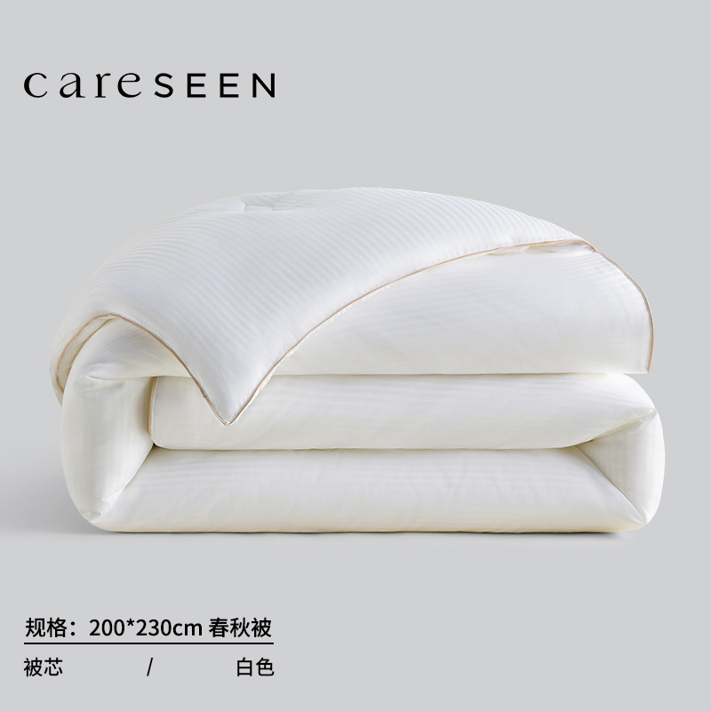 【产品面料】全棉(60支) 【产品填充】聚酯纤维 【产品颜色】白色 【产品规格】200*230cm/填充克重1150g/整体克重2280g 【产品包装】careseen无纺布袋 【包装尺寸】50*40*16cm 优质精梳棉,在高品质棉花田中手工采摘,只选取39mm长纤维绒朵面料才足够细腻坚韧 光能速热锁温芯,光能自发热,被窝暖得快纳米微粒锁住身体热量整晚动态控温,不闷不凉刚刚好