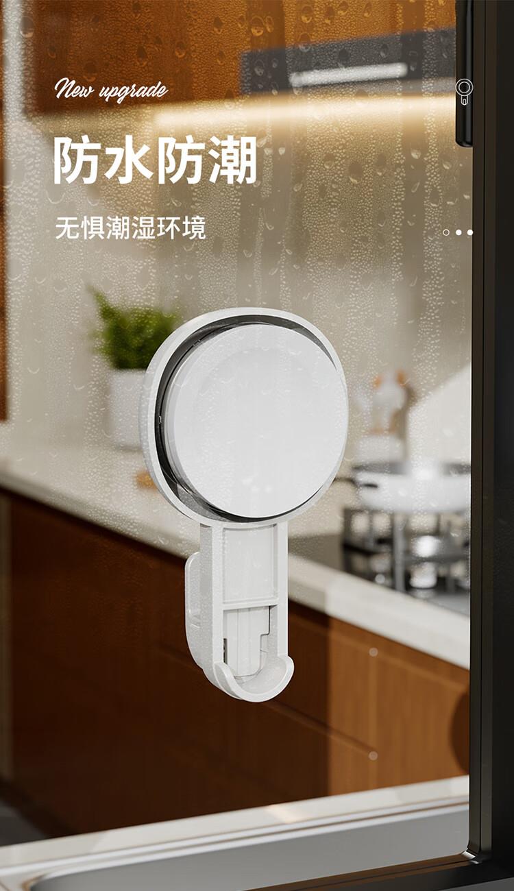 产品尺寸:11.5*6.4*4.2cm(4个) 承重:5KG 材质:真空吸盘TPE 适用墙面:光滑瓷砖,光滑玻璃,人工大理石,亚克力板 类别:挂钩 适用场景:卧室,厨房,浴室 图案:纯色 功能:易操作,防水,真空吸附, 产品描述:环保新升级,免粘胶,循环用,真空吸附可移动,浴室使用防水,安装简单。