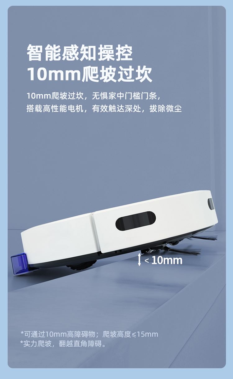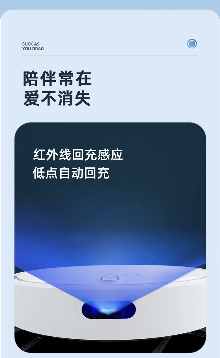 产品尺寸:303*303*72mm 额定功率:10W 额定电压:7.4V 电池容量:2000mAh 尘盒容量:200ml 充电时间:3-5小时 遥控距离:≤5米 毛重:2.25kg 电池:7号电池-2个 1、遥控控制-操作简单; 2、智能回充; 3、2000pa大吸力; 4、全面升级-强悍吸力; 5、边吸边扫-干净才是真实力
