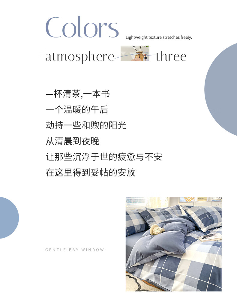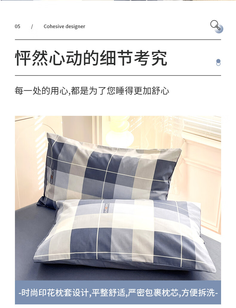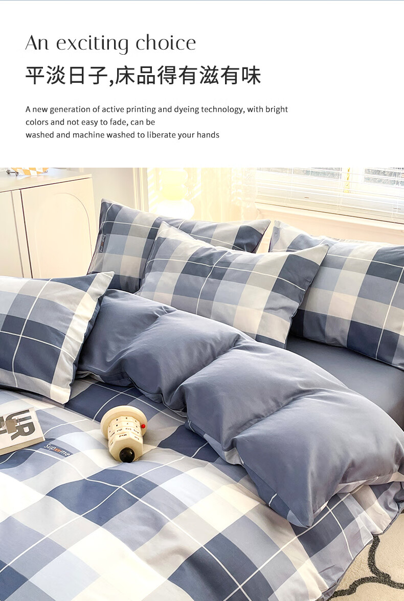 品 名:释珏人生 规 格:1.5米/1.8米床通用 被 套:200*230cm 床 单:230*230cm 枕 套:48*74cm*2 克 重:1.86kg 面 料:棉 40S