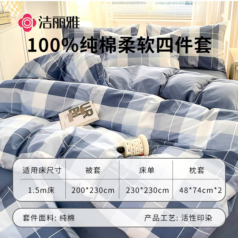 洁丽雅四件套床单被套200*230cm1.5/1.8米床印记