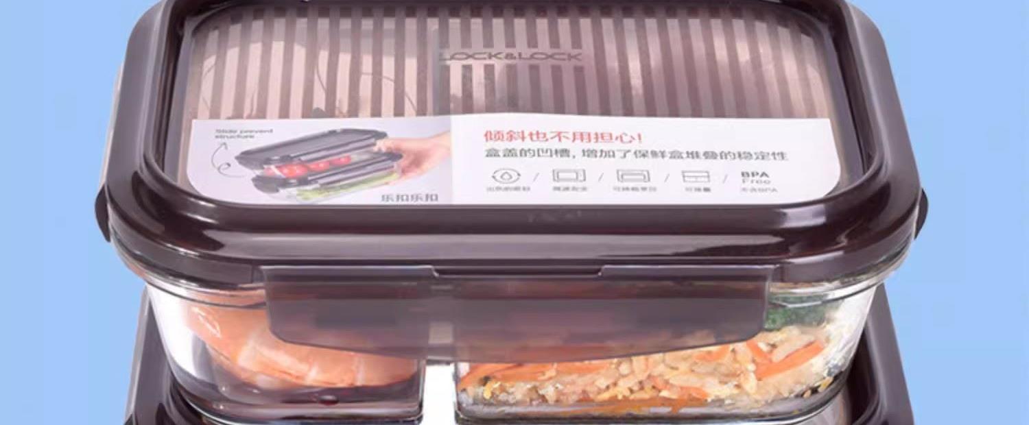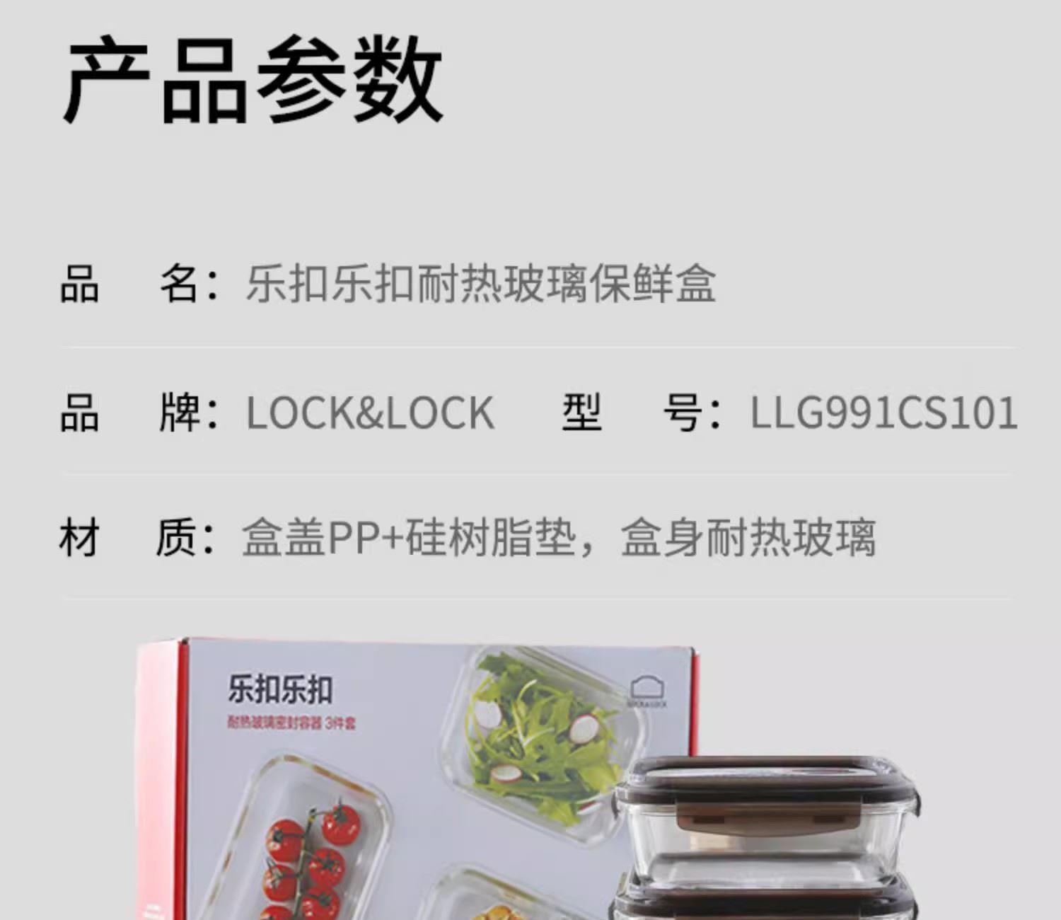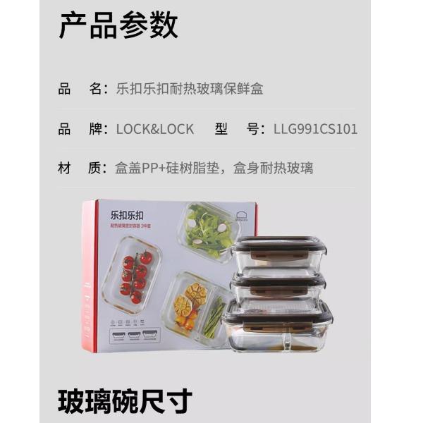 乐扣乐扣保鲜盒耐热玻璃分隔便当盒三件套LLG991CS101
