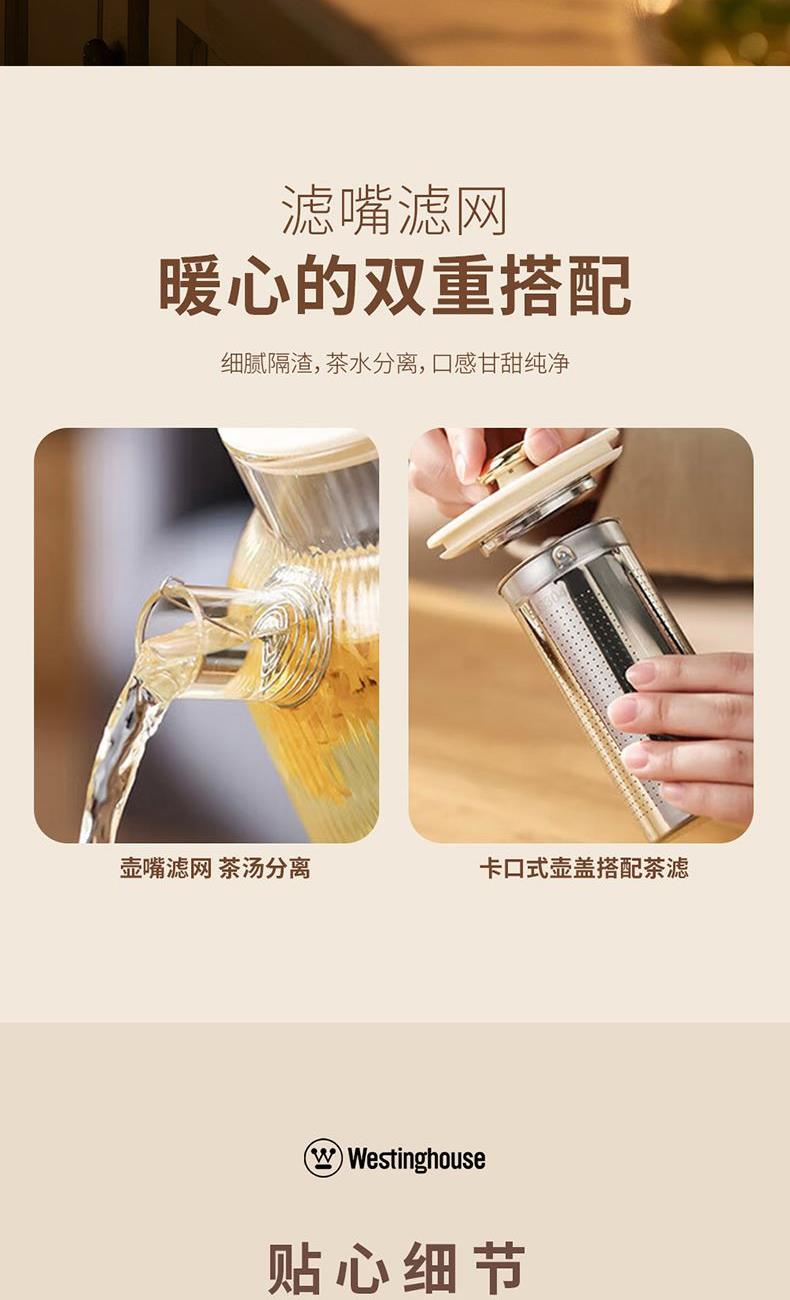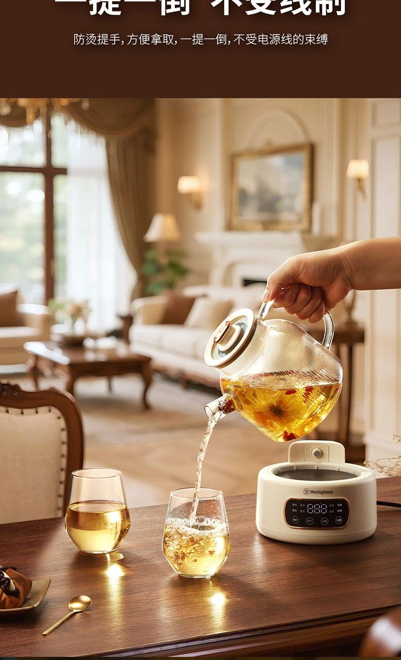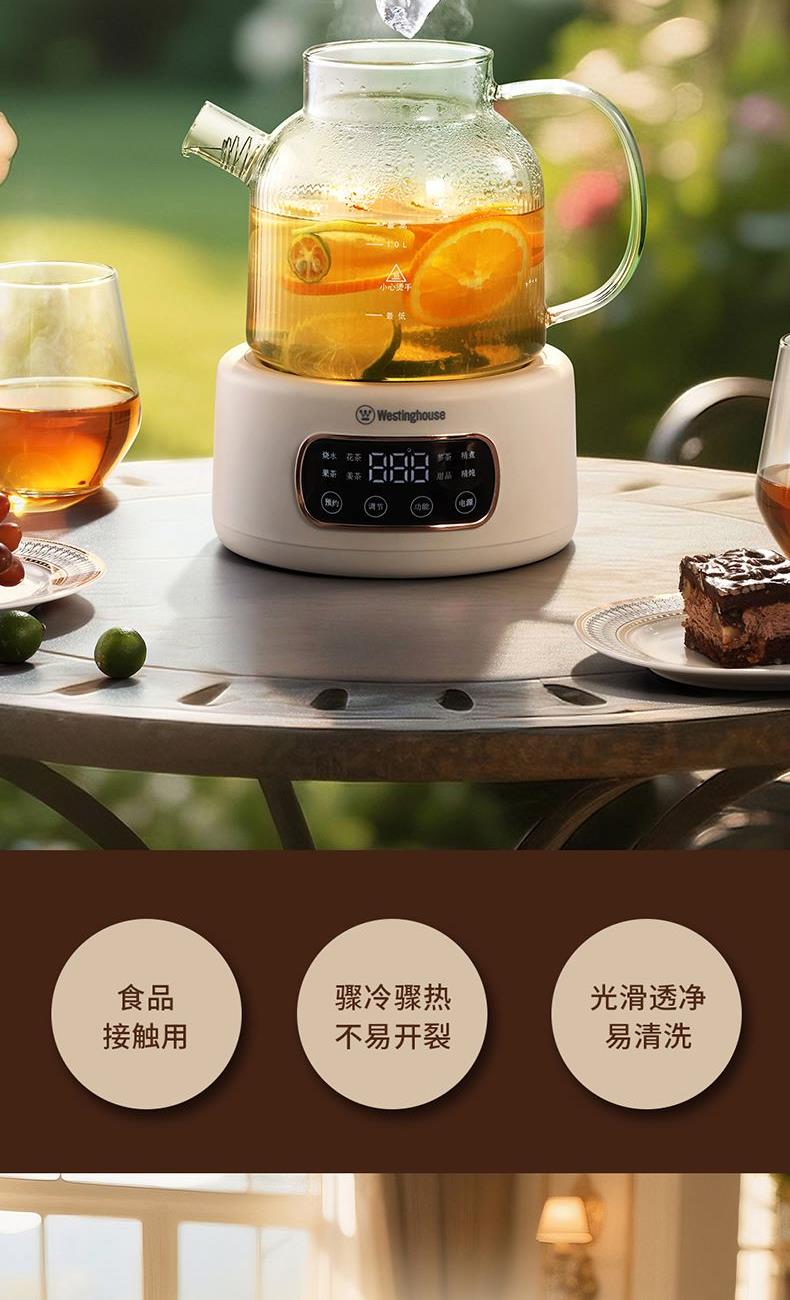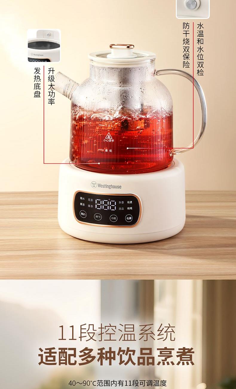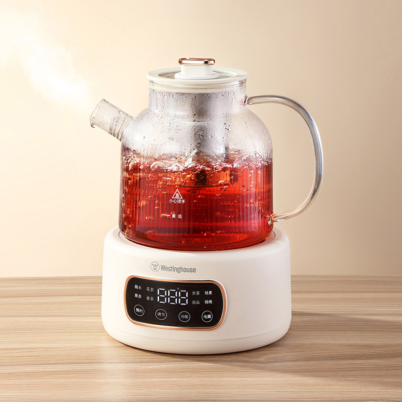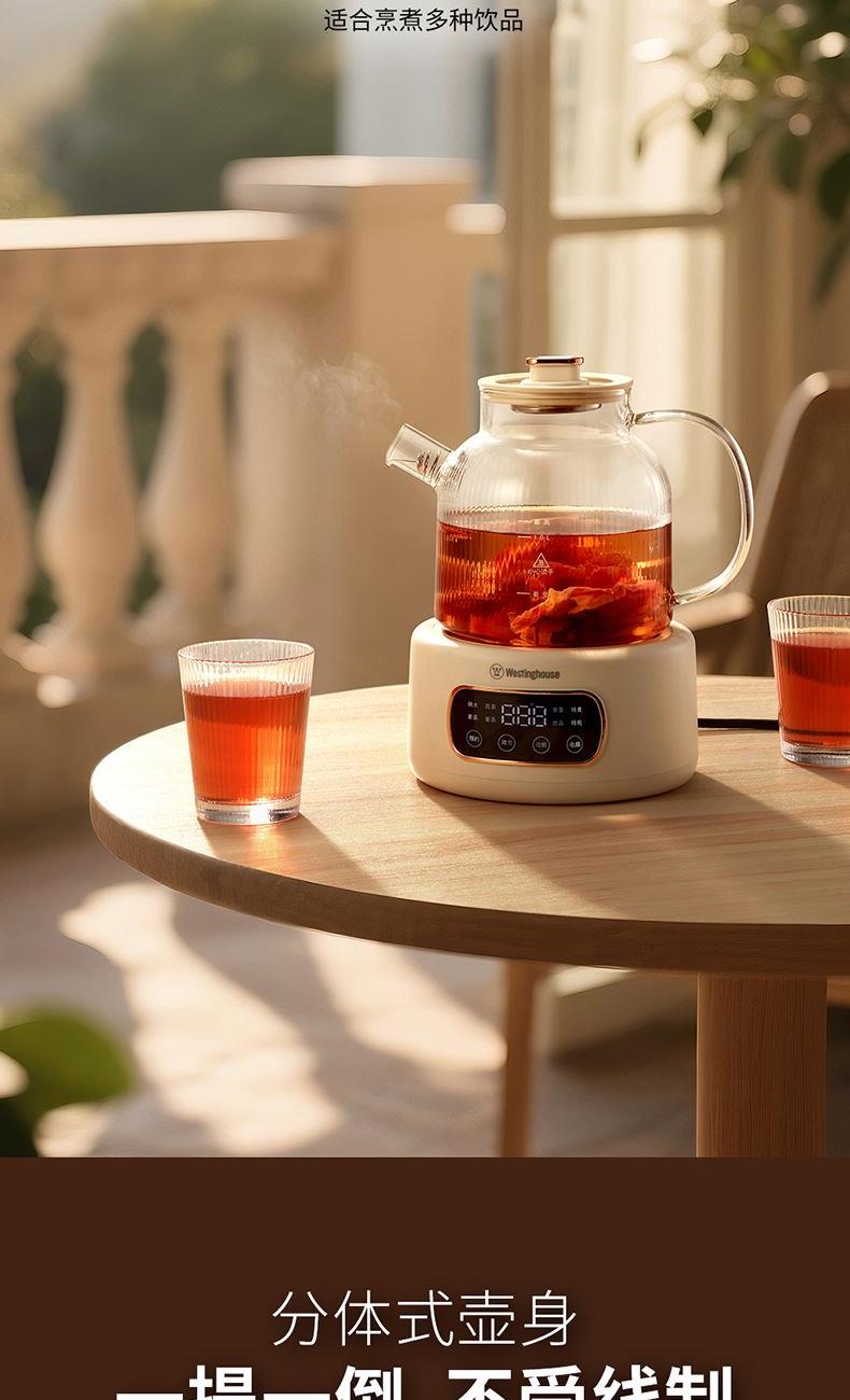 产品规格: 1、额定电压:220V~50Hz 2、额定功率:600W 3、额定容量:1.2L 4、壶体材质:高硼硅玻璃 5、操作方式:触控式 6、产品颜色:米白色 产品特点: 1、高硼硅玻璃一体壶身,安全卫生耐高温; 2、八大养生菜单,11段控温系统,适配多种饮品烹煮; 3、24h智能预约,暖心热汤如期而至; 4、防干烧过热保护,使用更安心; 5、滤嘴滤网双重搭配,细腻隔渣; 6、分体式壶身,拿取更方便。