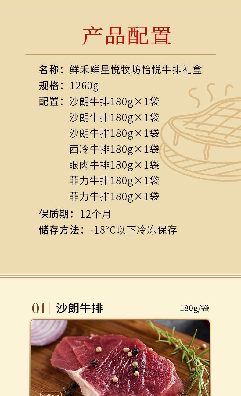 鲜禾鲜星悦牧坊怡悦牛排礼盒1260g