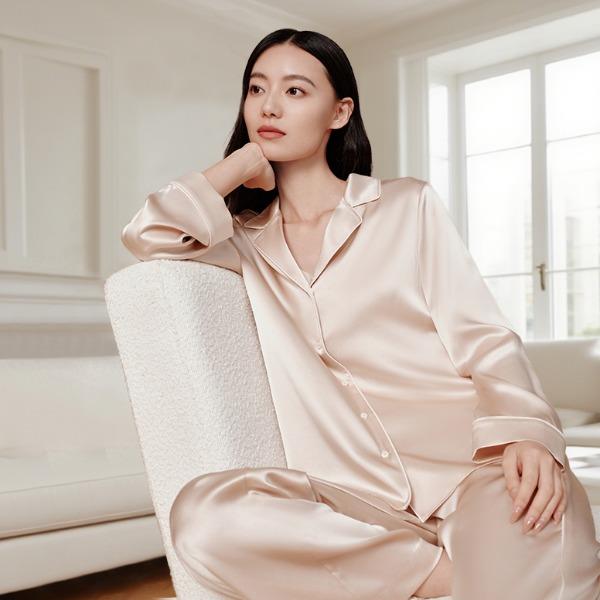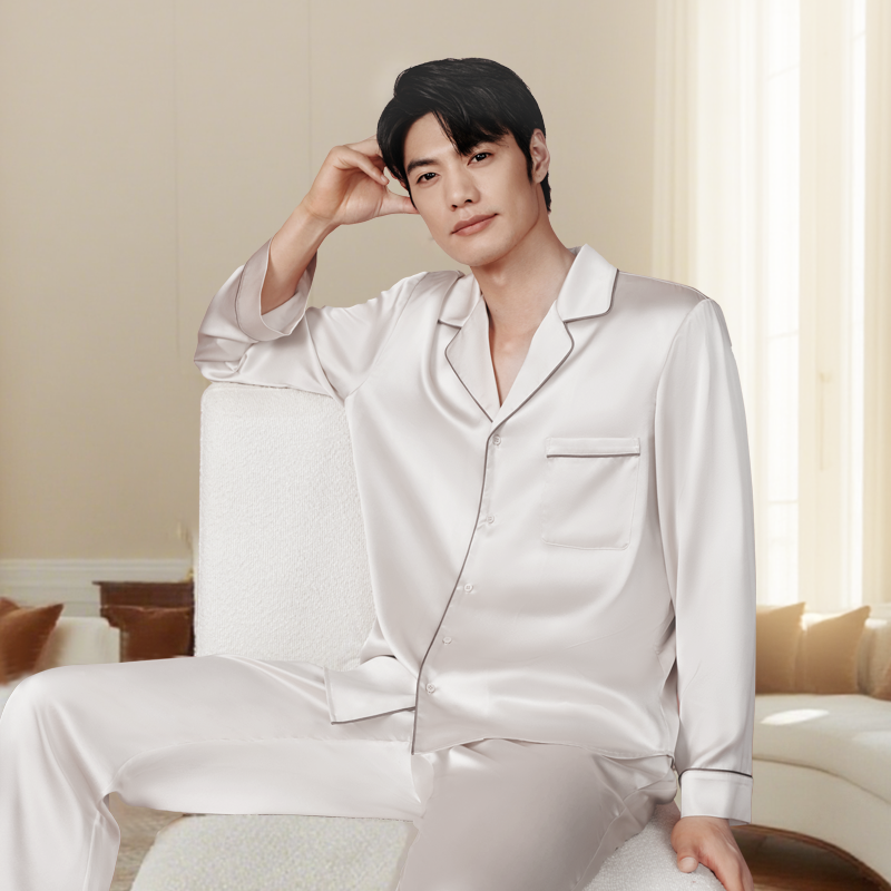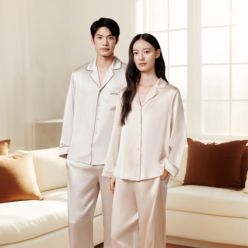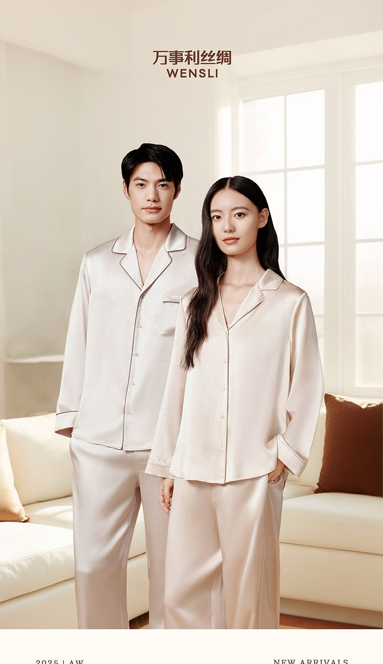 简逸情侣款真丝睡衣套装万事利家居服上下套