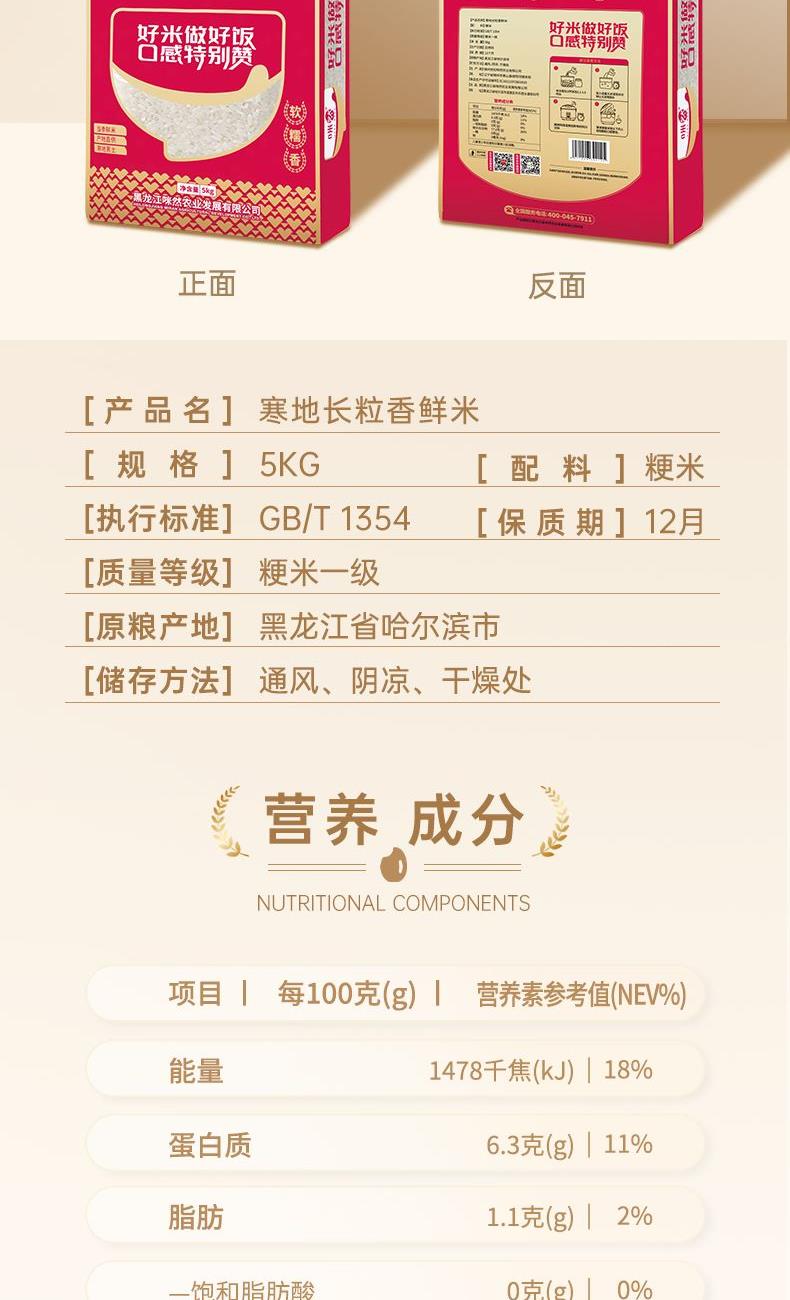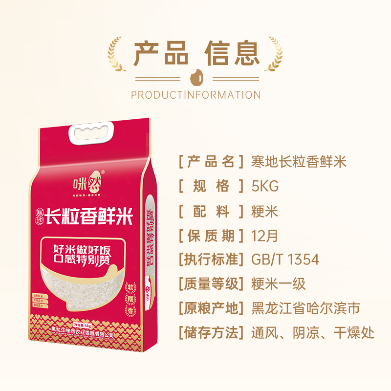 产 品 :寒地-长粒香鲜米5kg 执行标准 :GB/T 1354 保 质 期 :12个月 产 地 :辽宁锦州 箱 规 :5*5kg