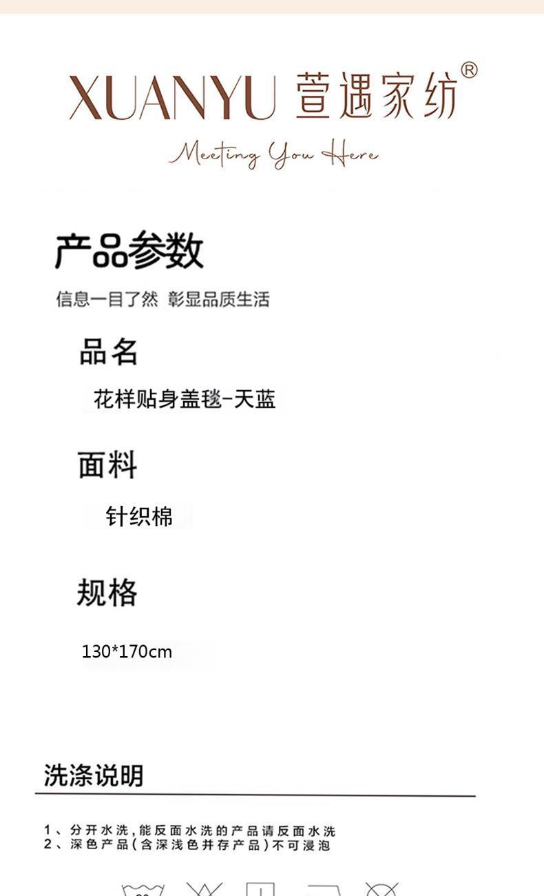 萱遇家纺花样贴身盖毯-天蓝Q-C7093-1