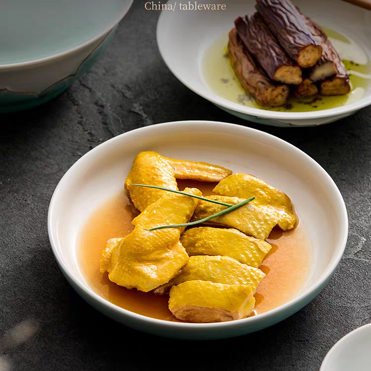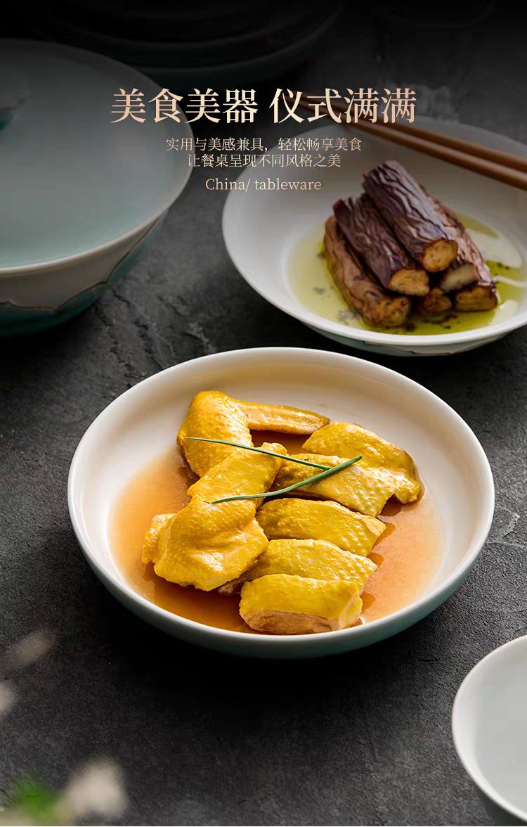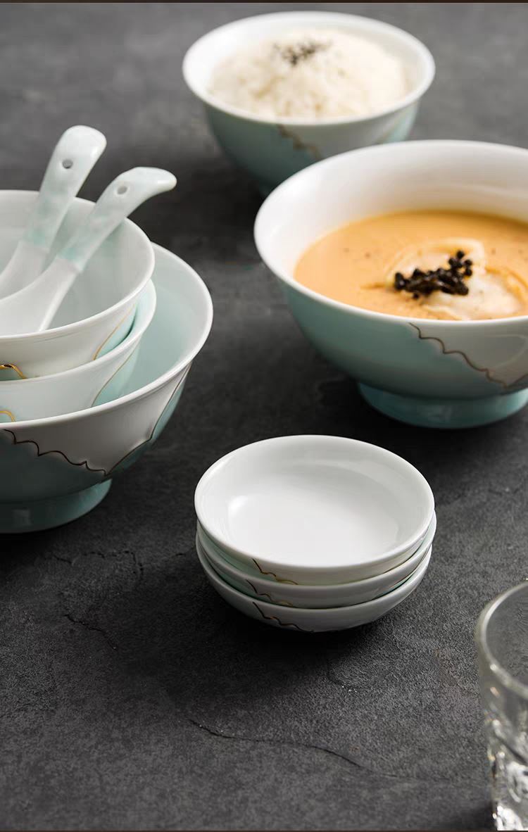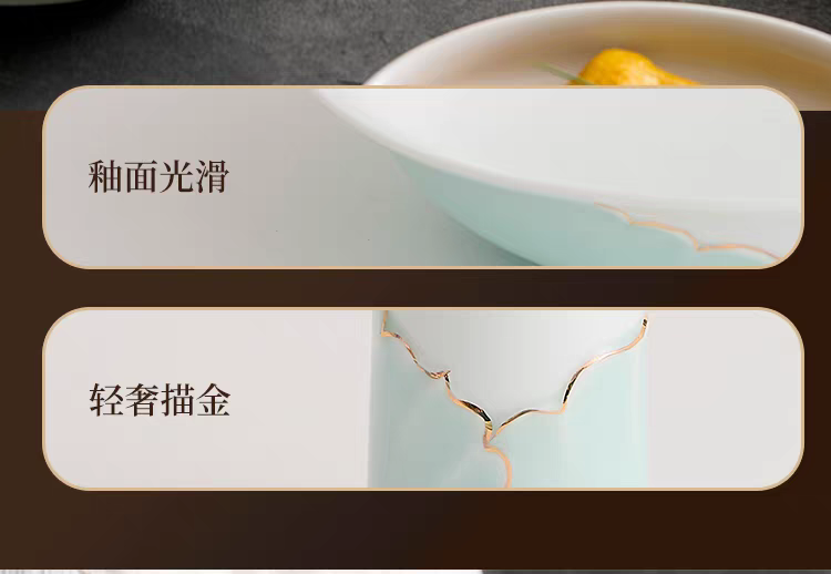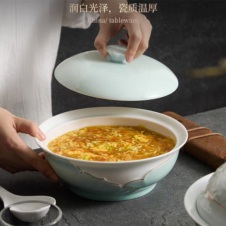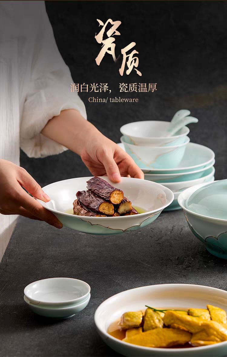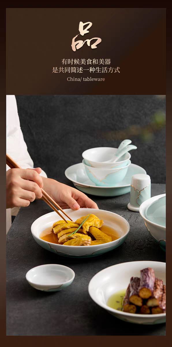 尾桥下窑影青瓷26头忆荷鎏金浮雕餐具套装商务礼赠母亲节礼品