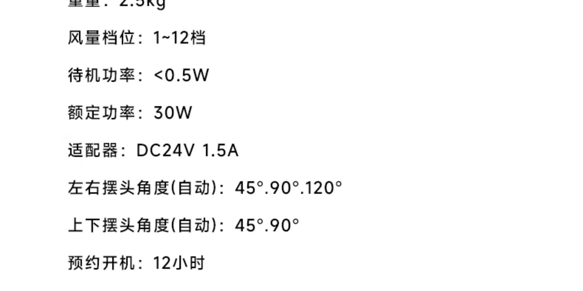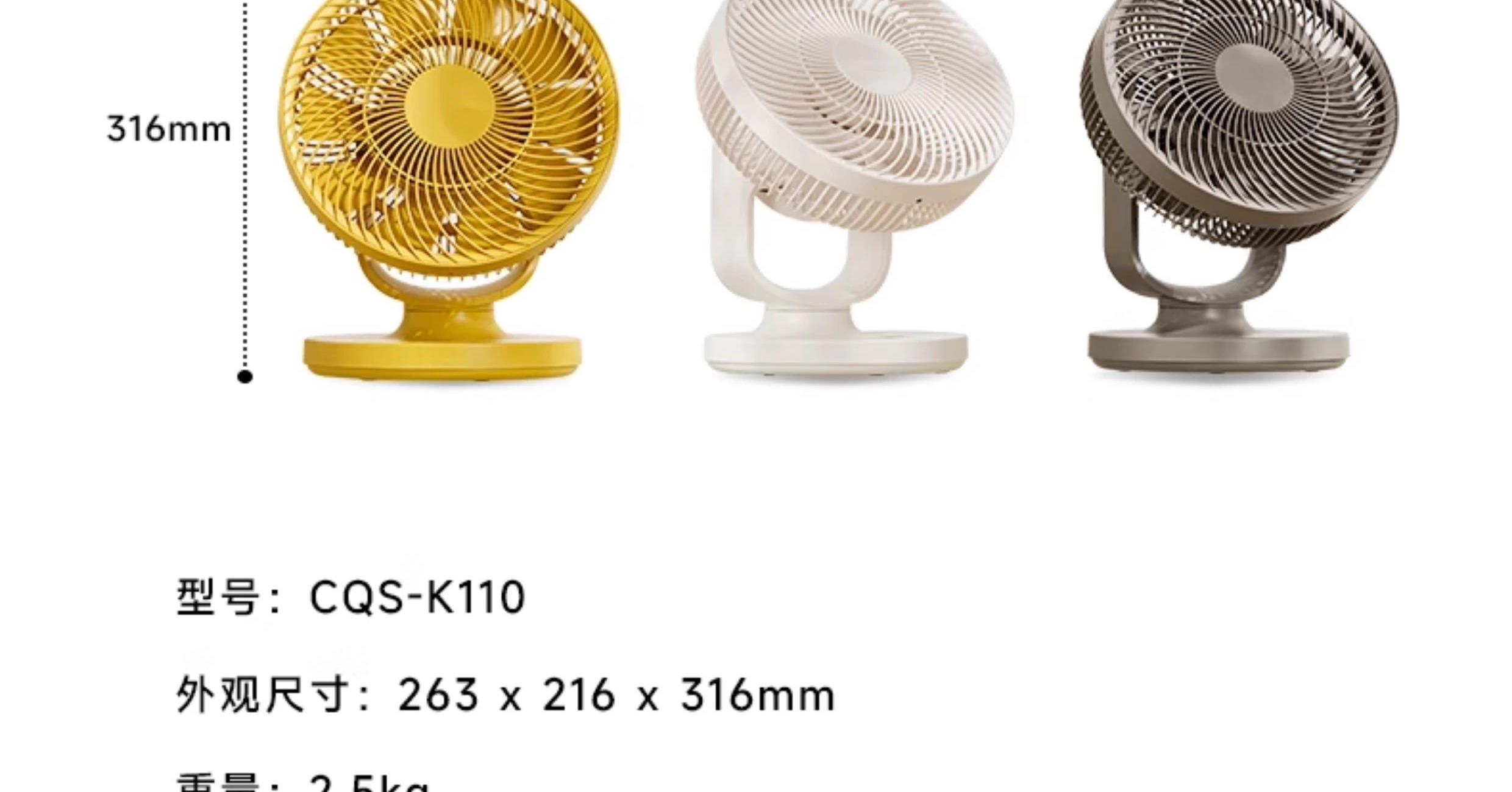 产品型号:CQS-K110 功率:36W 定时:12小时 风速:1-12档 使用时间:2-20小时 BLDC电机,降低噪音的同时,耗能更低 10叶扇叶舒适送风,使空气循环的更广、更远 12级可调风速,可触摸操作 12小时定时,可遥控远程 超静音风扇,低噪运行