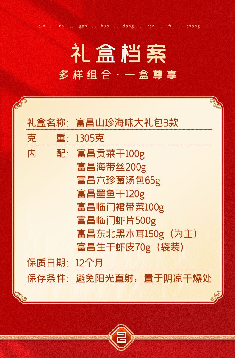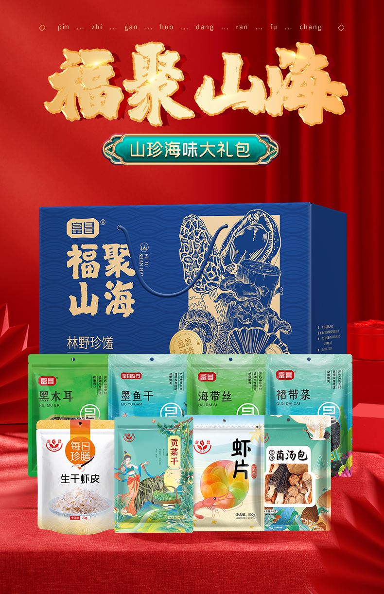 富昌贡菜干100g 富昌海带丝200g 富昌六珍菌汤包65g 富昌墨鱼干120g 富昌临门裙带菜100g 富昌临门虾片500g 富昌东北黑木耳150g 富昌生干虾皮70g