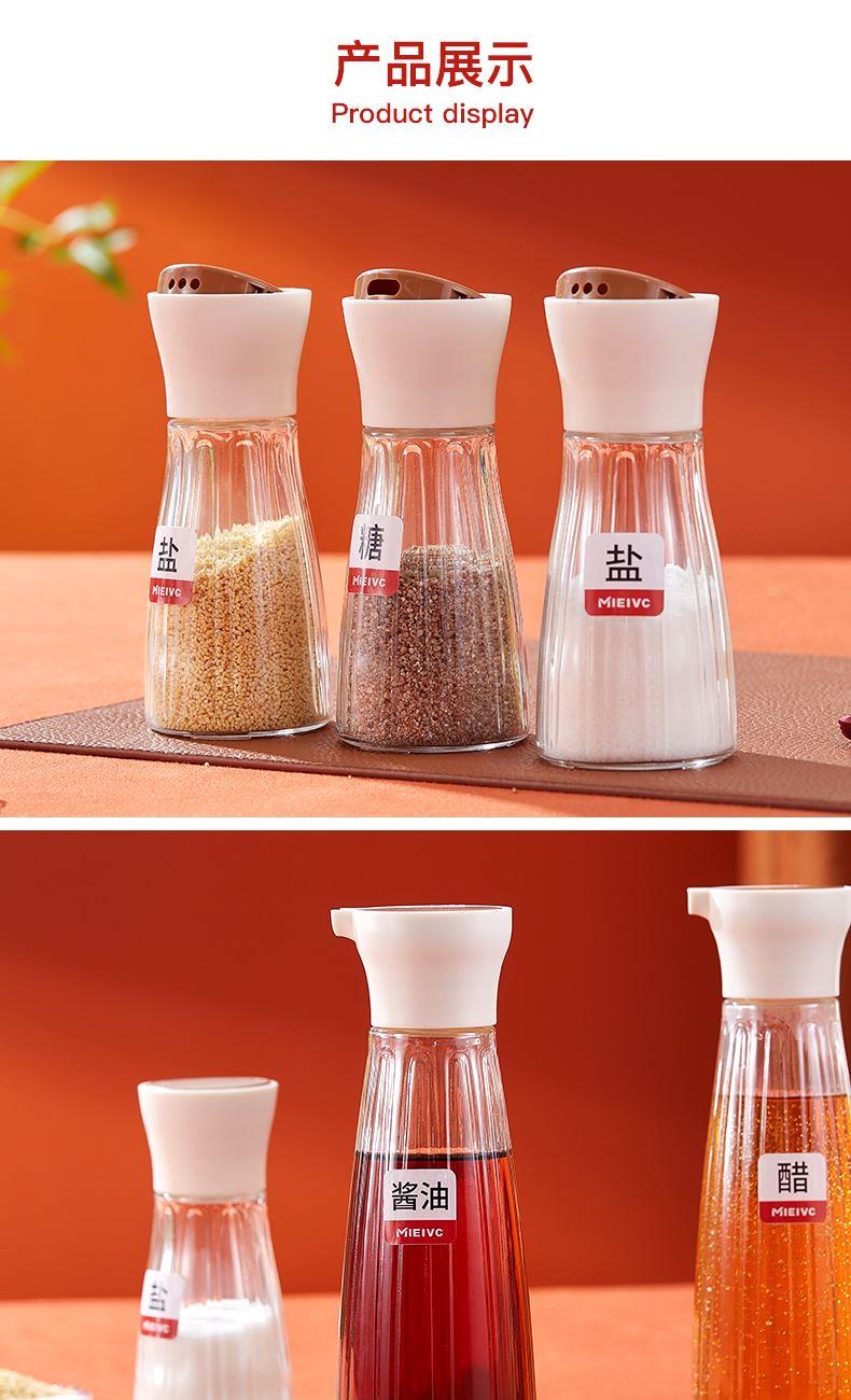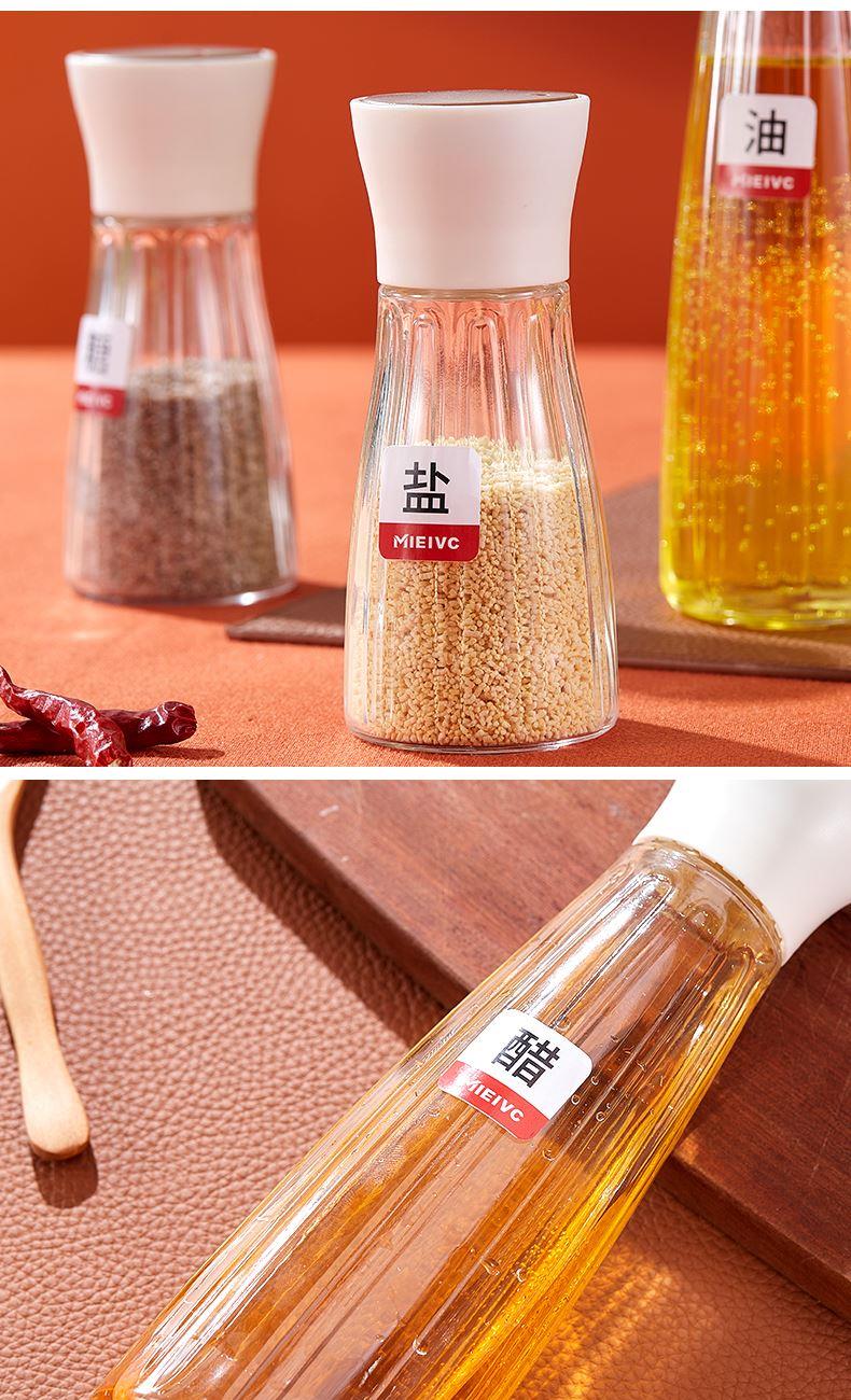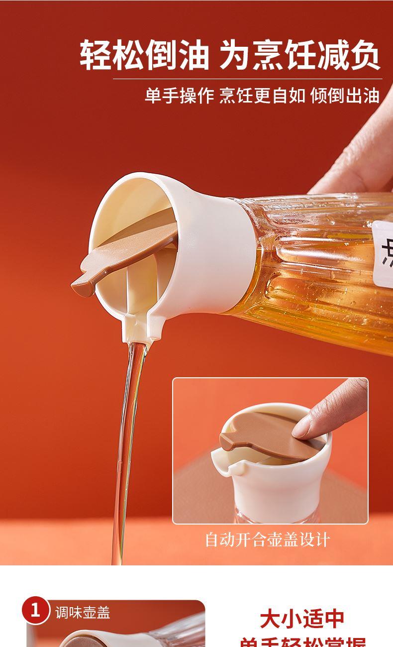 产品规格:油壶420ml*3、调味罐180ml*3 产品材质:钠钙玻璃0~60℃、食品级PP、食品级硅胶 彩盒尺寸:400*96*230mm 外箱尺寸:50.2*41.4*47.8CM 外箱毛重:16.8kg 产品特点: 油壶盖子双孔设计,大小口径可控制食量,壶盖多用,可互换,更懂你的需要,随心所欲,食品级pp、食品级硅胶,开启健康生活。 健康玻璃材质,设计感强,大小适中,握感舒适,倒油省力,男女老少都可轻松拿起。通明瓶身,余量可视,轻松辨别,及时补充,美好食代,油我相伴。 彩盒包装简约时尚设计,提手升级,厨房套装高颜值,高品质产品,开启健康生活,掌控生活每一餐。