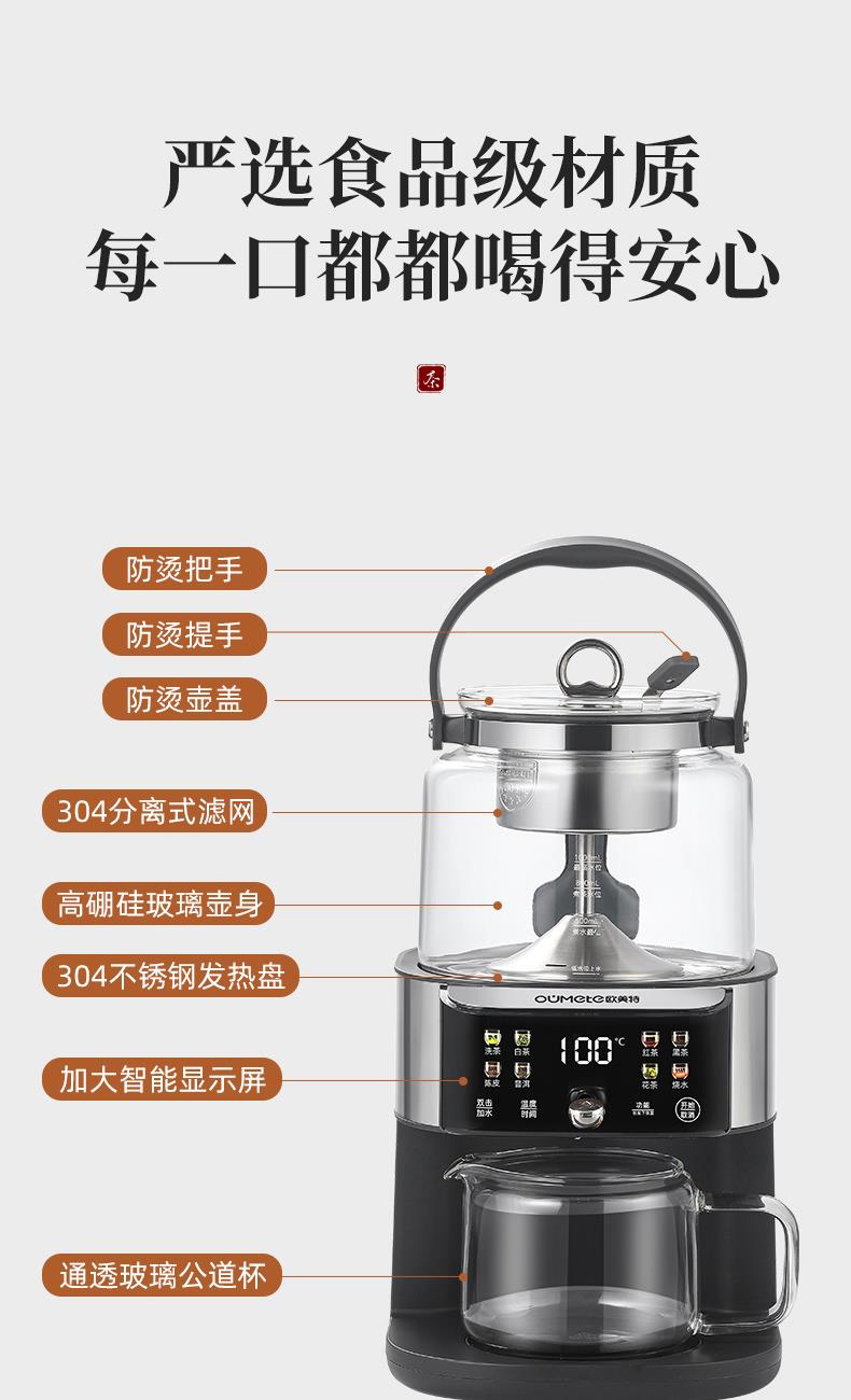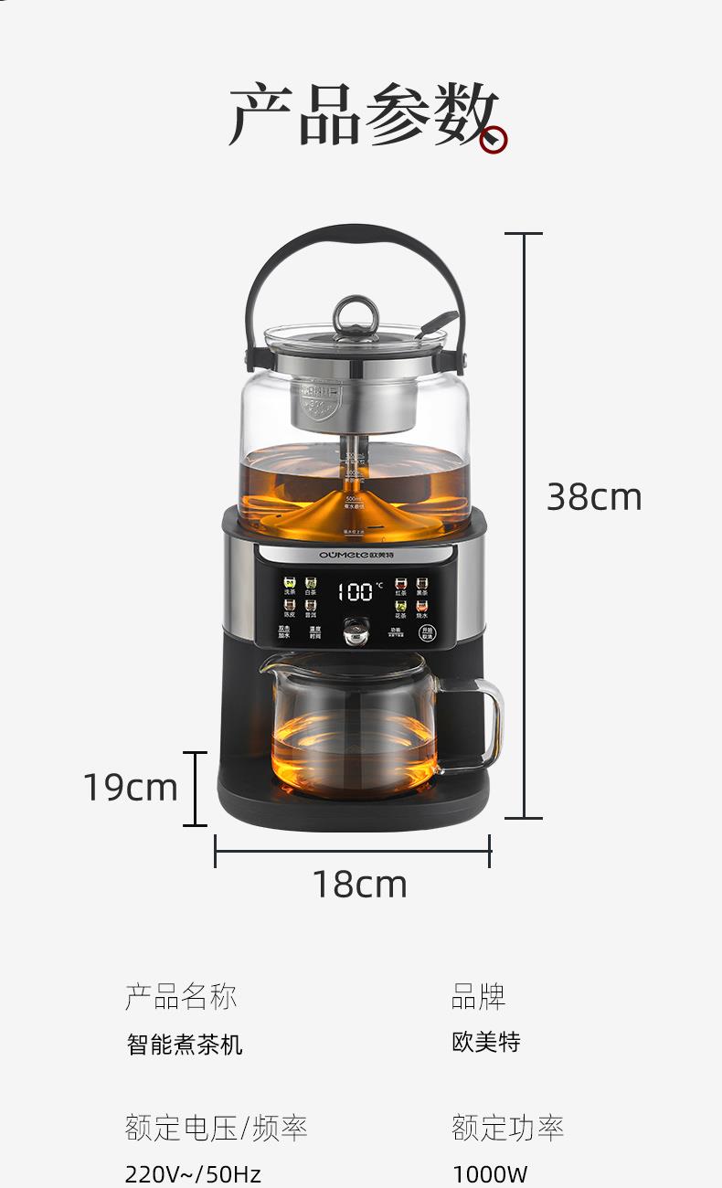 • 欧美特萃茶机自动上水壶智能煮茶器玻璃花茶壶商务茶具商务办公室