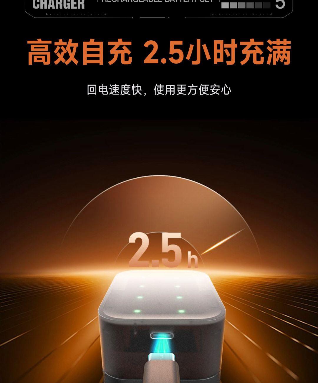 高效自充2.5小时充满,回电速度快,使用更方便安心