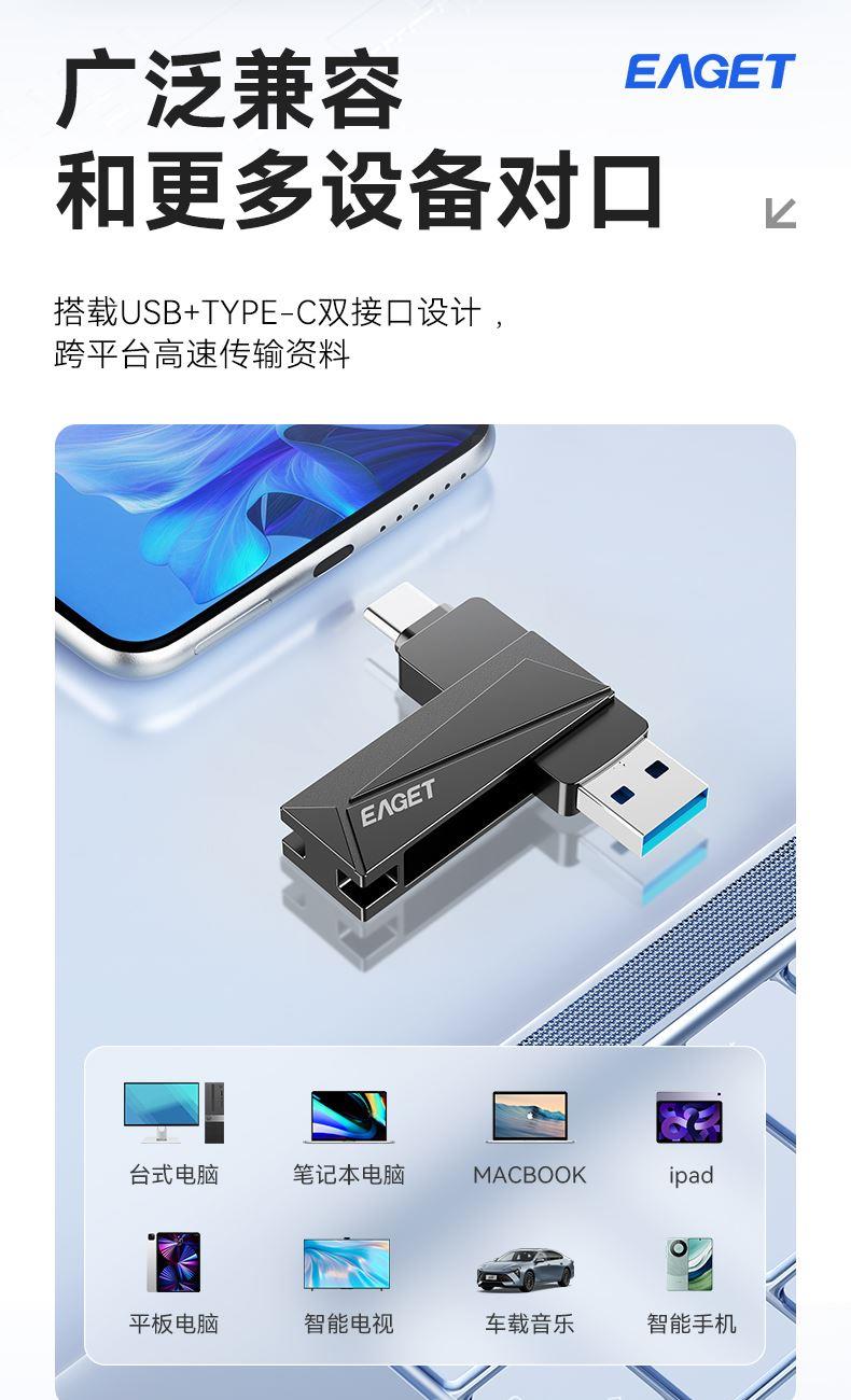 双接口均采用USB3.2,广泛兼容和更多设备对口 Flash 芯片高速版,360°旋转保护安全堡垒 锖色电镀金属效果, 原厂包装,送礼佳品。 产品尺寸:59x15x9.35 mm 单品重量:22g