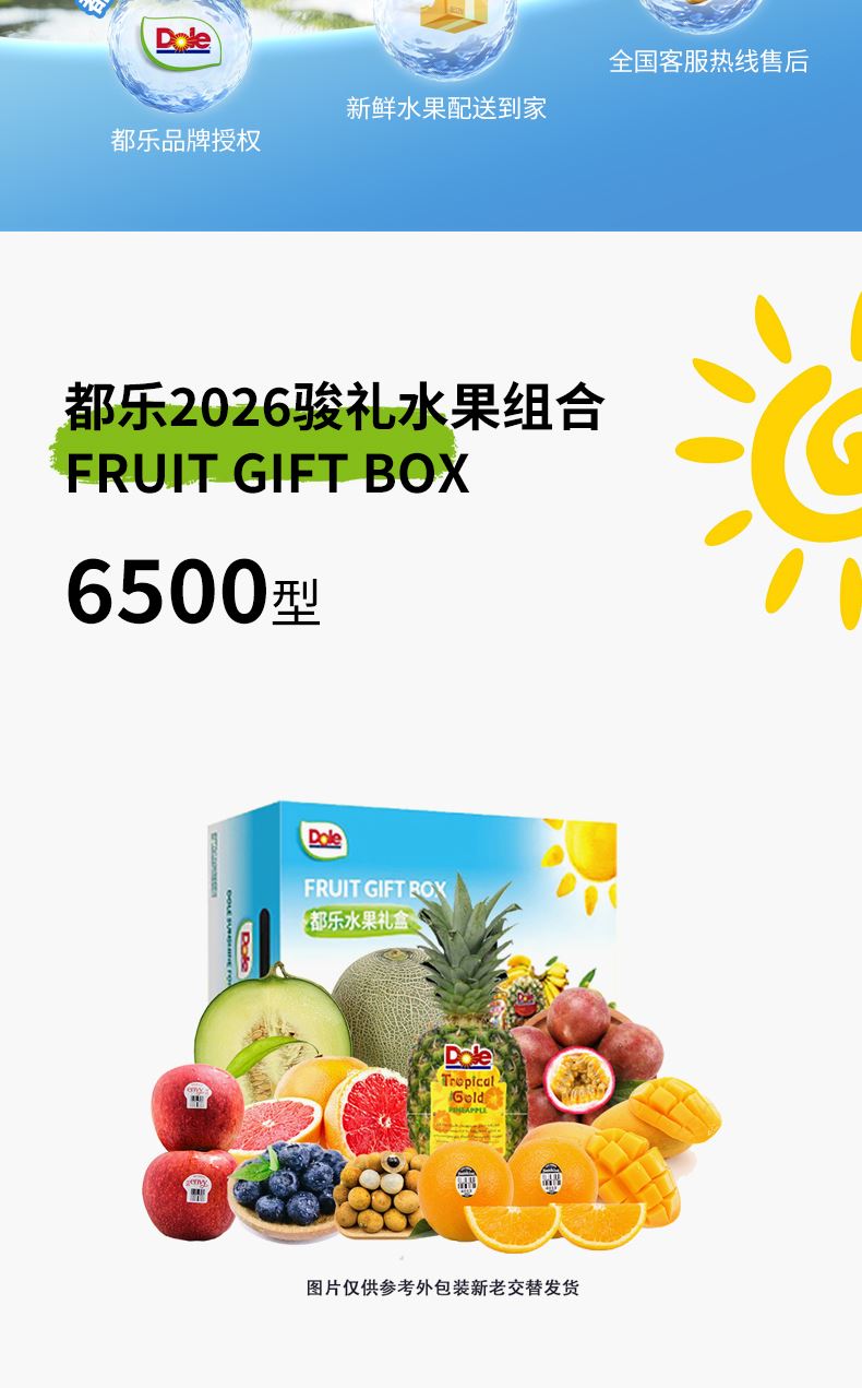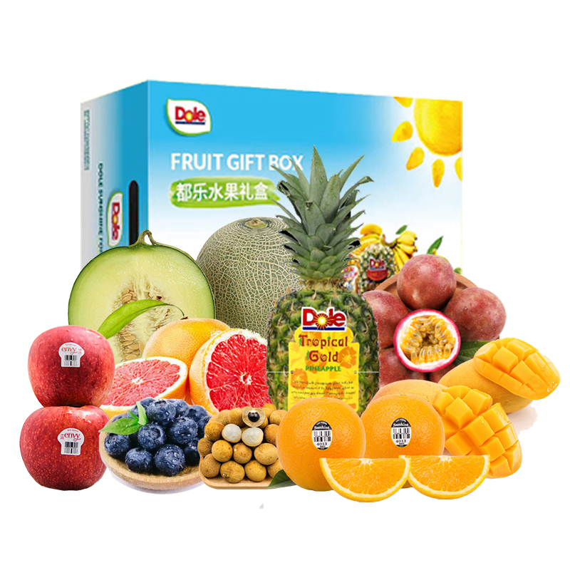 "菲律宾金菠萝约1200G*1/个 进口椰青 约900g*1/个 佳沛阳光金奇异果 约120g*4/个 蓝莓14mm+ 约125g*4/盒 进口爱妃苹果 约220g*4/个 新奇士进口甜橙 约220g*2/个 时令芒果约500g*1/盒 进口龙眼约500g*1/盒 进口西柚约300-350g*2/个"