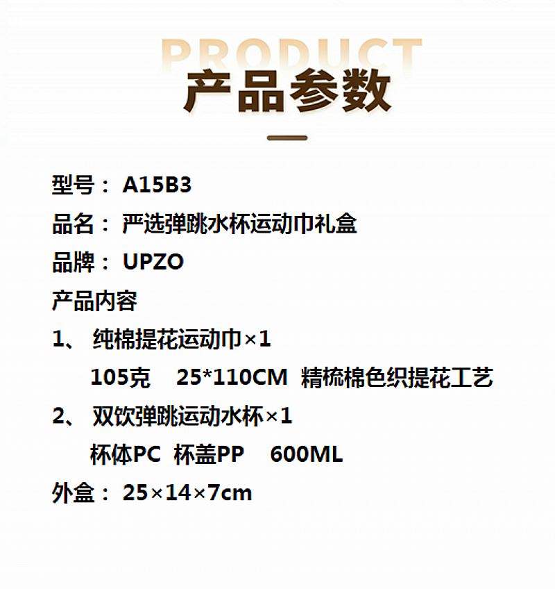 UPZO严选弹跳水杯运动巾礼盒A15B3