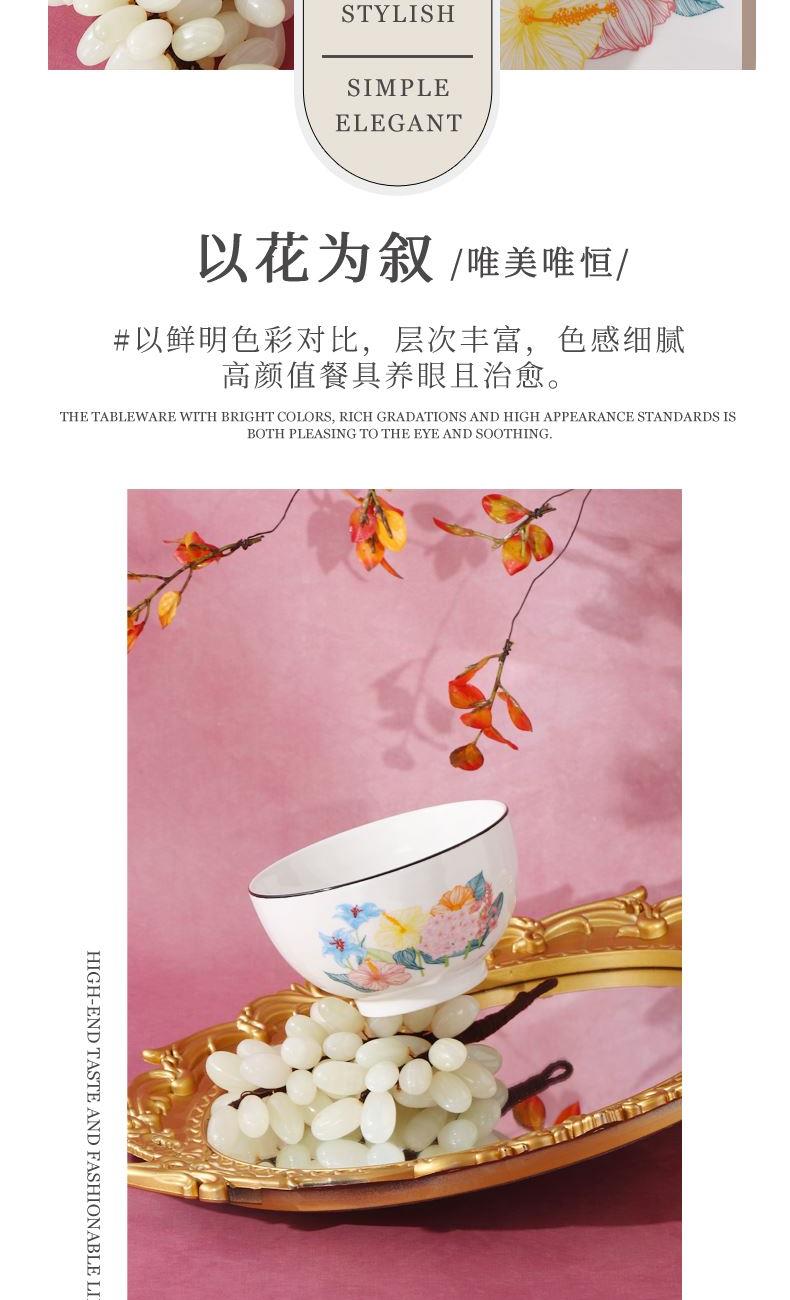 产品组成:8碗+8勺+4盘+8筷+礼盒 产品材质:低骨瓷 产品工艺:烤花+素烧 产品规格:4.5寸碗,三弯小勺,8寸盘 包装尺寸:32x23x9.2cm
