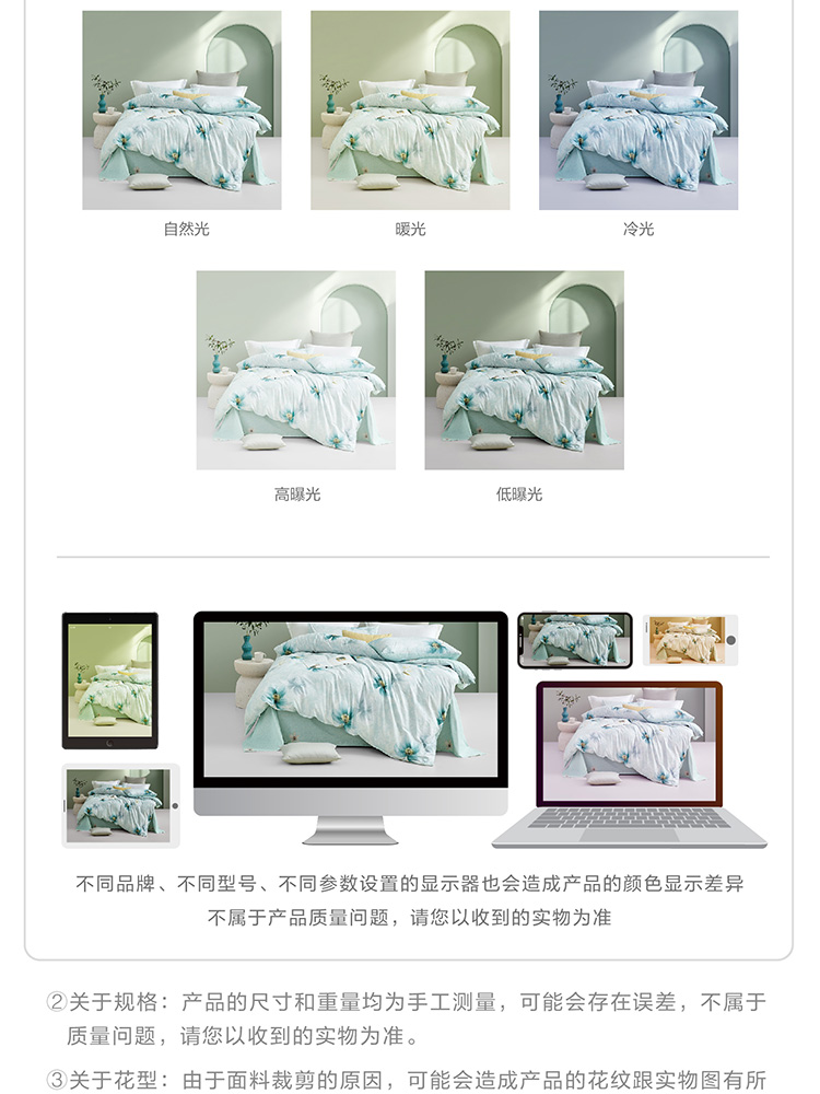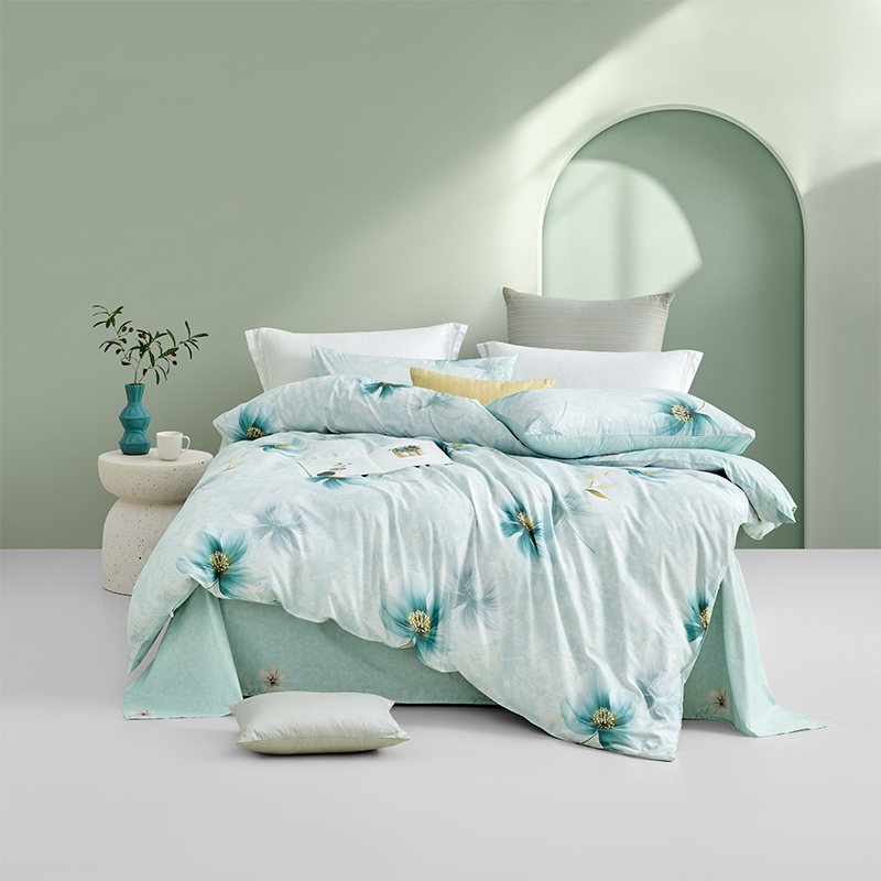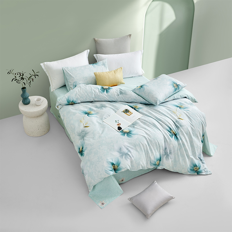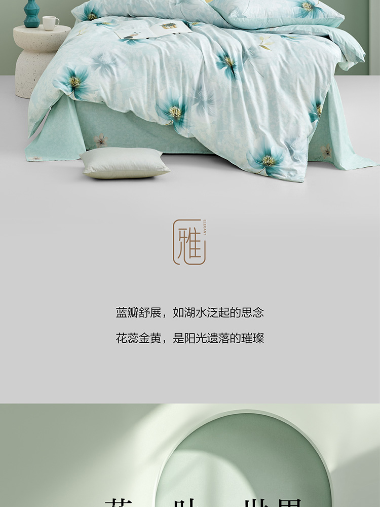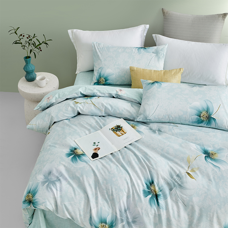 规格尺寸:枕套:48*74cmX2 被套:200*230cmX1 床单:230*240cmX1 外箱尺寸:54*42*38 cm 采用清新淡雅的花卉图案,色彩柔和,带来自然舒适的睡眠体验,追求简约风格 全棉面料亲肤舒适,柔软、吸湿透气。