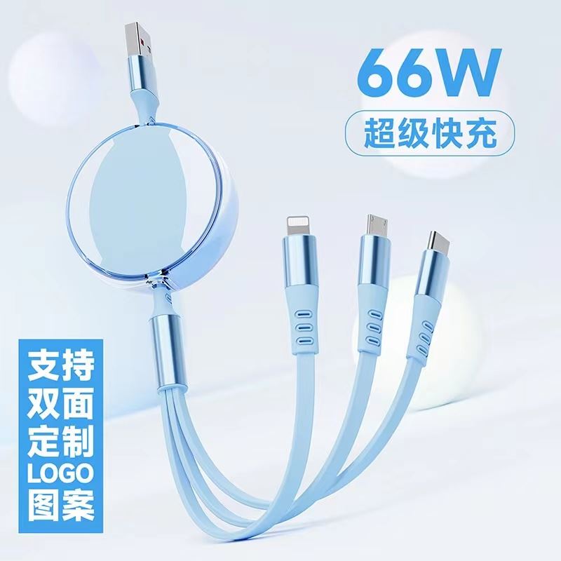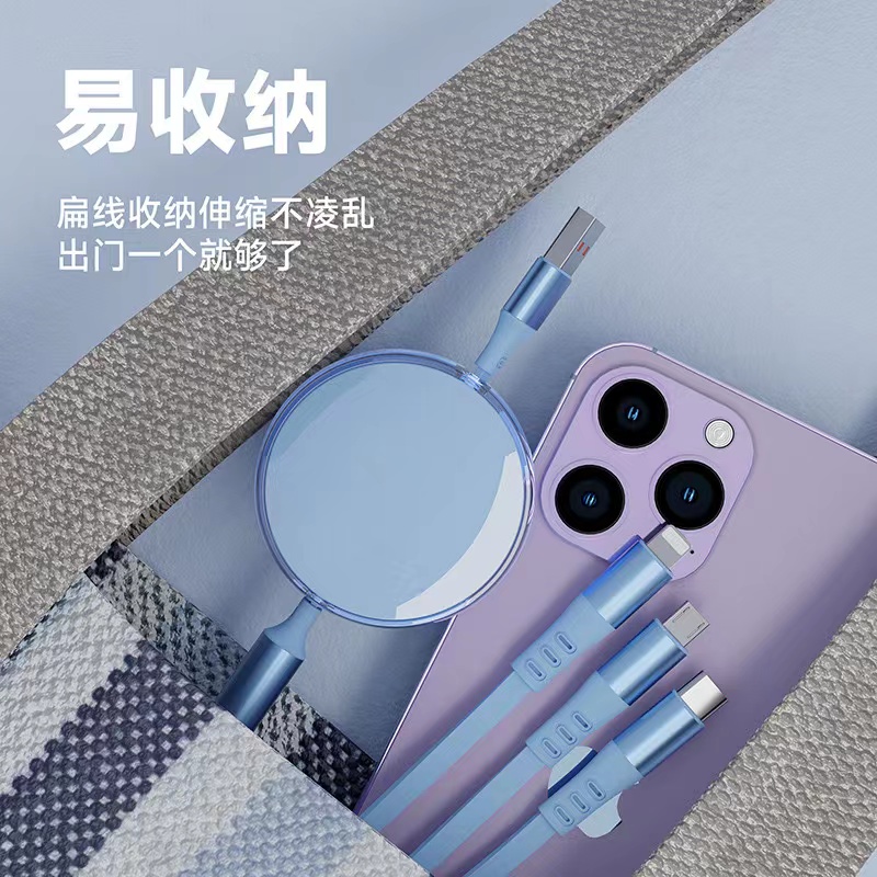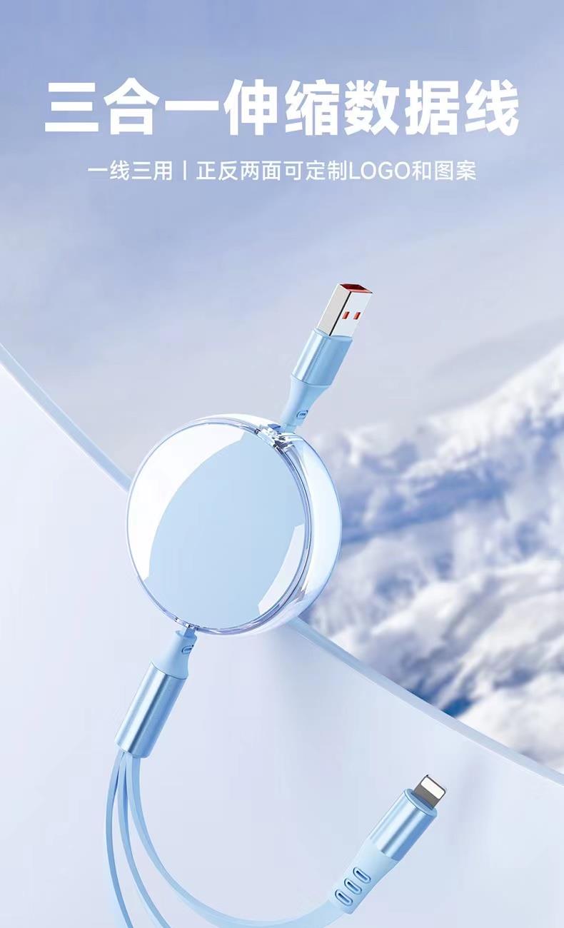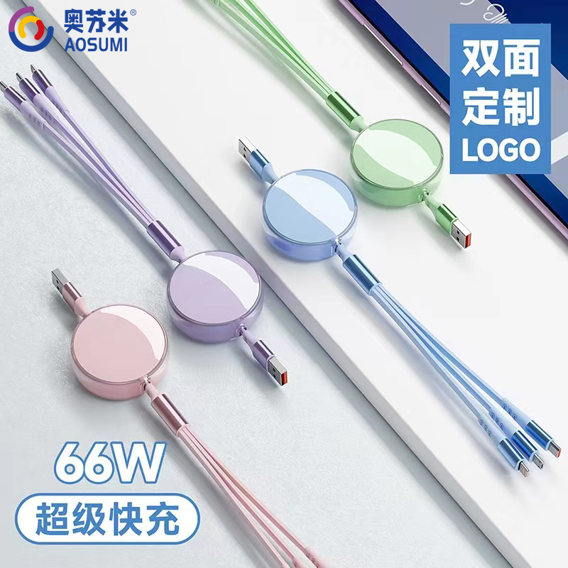 奥苏米S10水晶超级快充一拖三伸缩数据线
