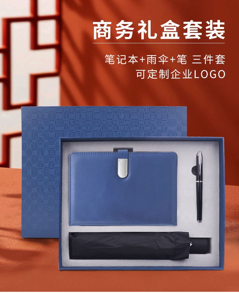 礼盒配置 : 1、A5搭扣硬皮PU皮笔记本 2、金属烤漆签字笔 3、全自动8骨三折伞 尺寸:280*56mm 4、包装盒尺寸:328x263x75mm 5、手提袋尺寸:335x293x85mm 6、重量:25kg/箱