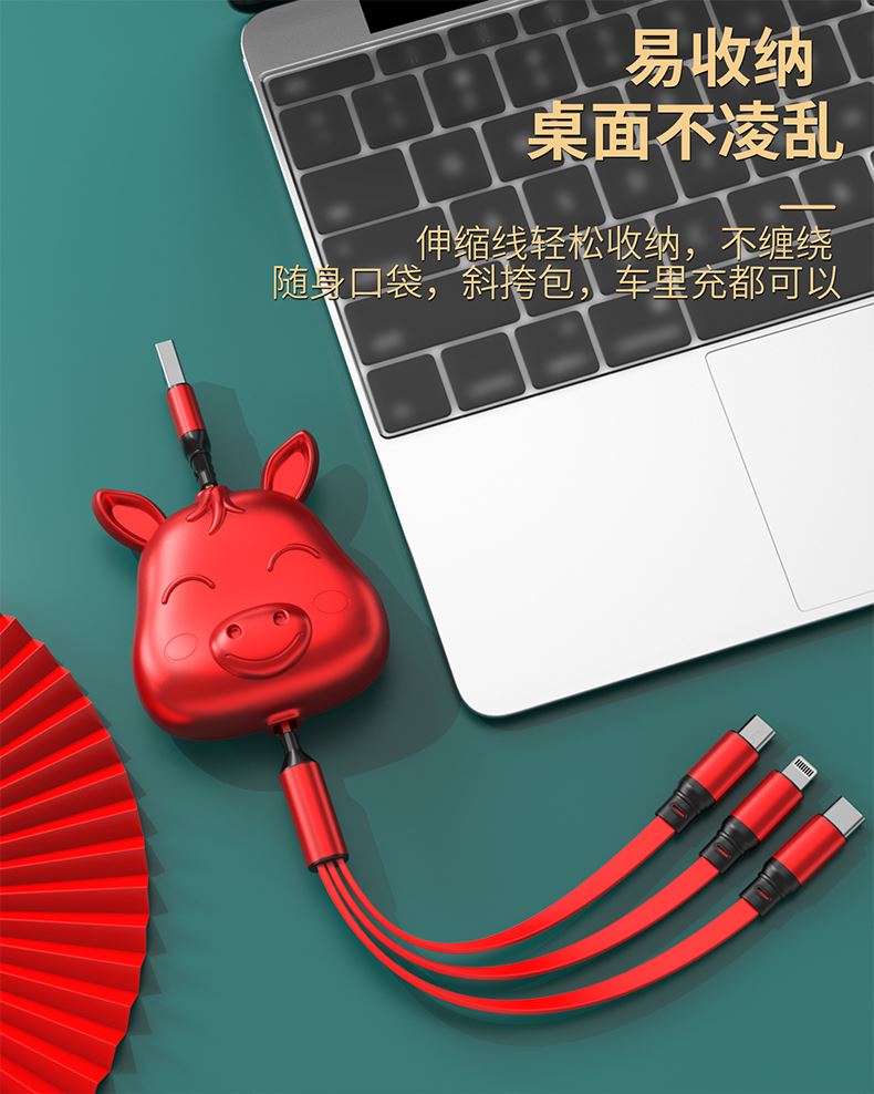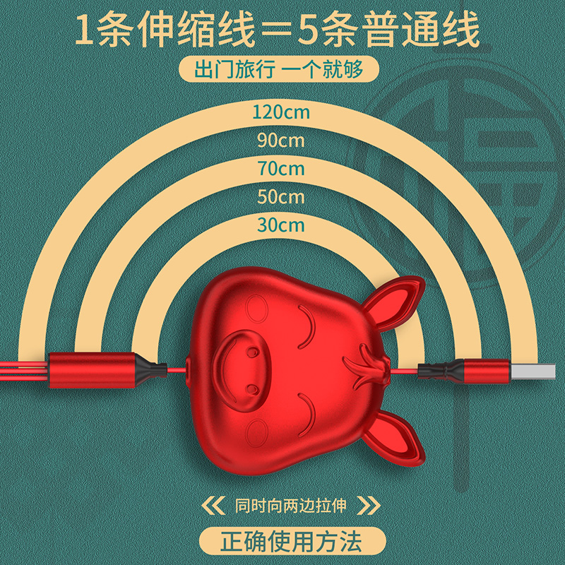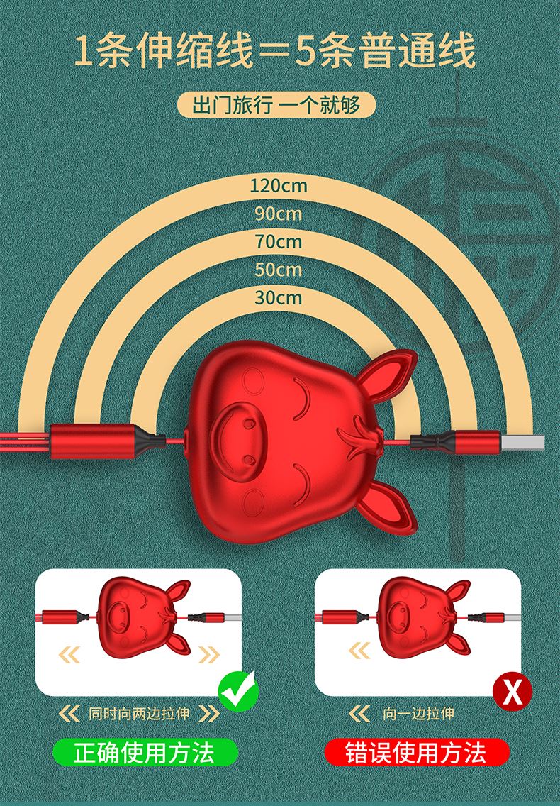 长度:1.2M 电流:5A 材质:TPE/ABS/铝合金 功能:TYPE-C支持100W超级快充适用:苹果/华为/安卓 颜色:红色 白色 萌宠造型,马年吉祥;加粗铜线,安全更高效;20-120cm长度随心调节,不卡顿